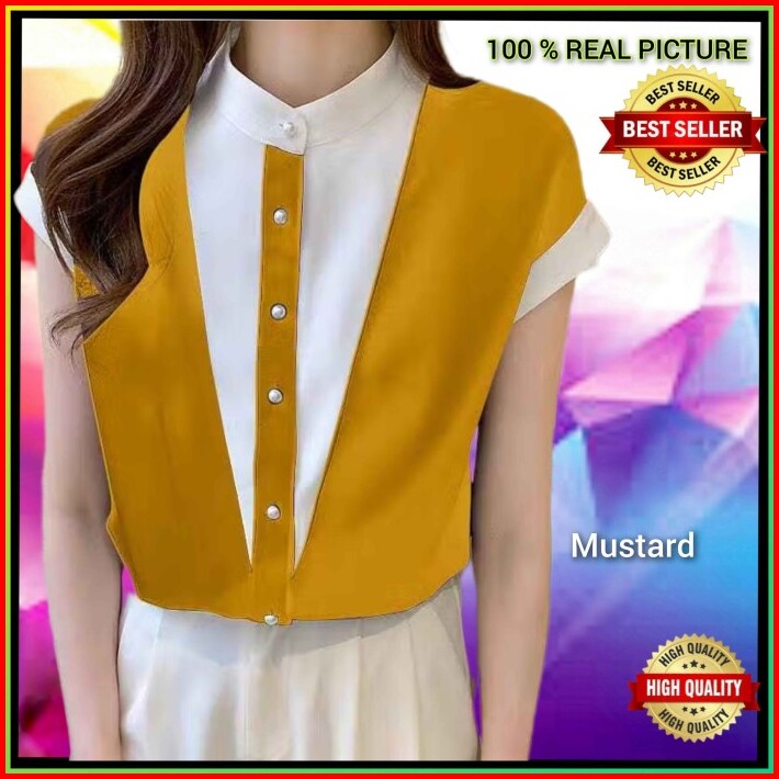 Baju Atasan Wanita Terbaru Blouse Eilen Kemeja Kerja Outfit Mustard