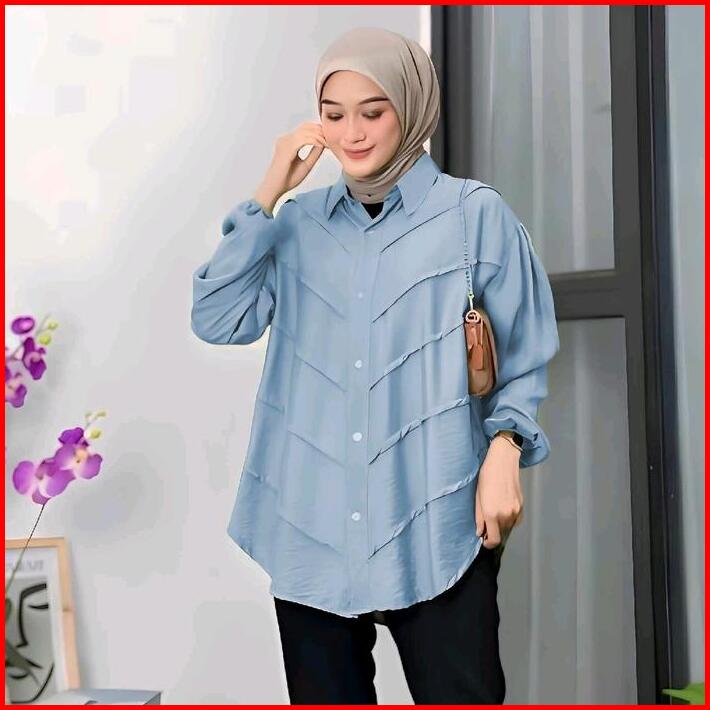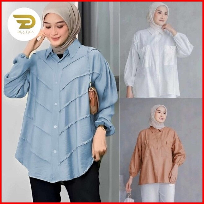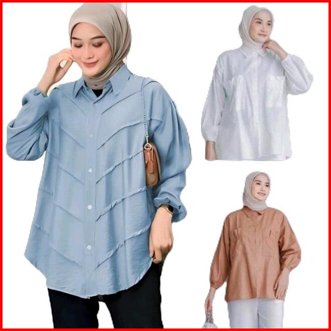 Paket 100 Dapat 3 Pcs Kemeja Wanita Motif Warna Random Atasan Baju Panjang Katun Linen Kantong Oversize