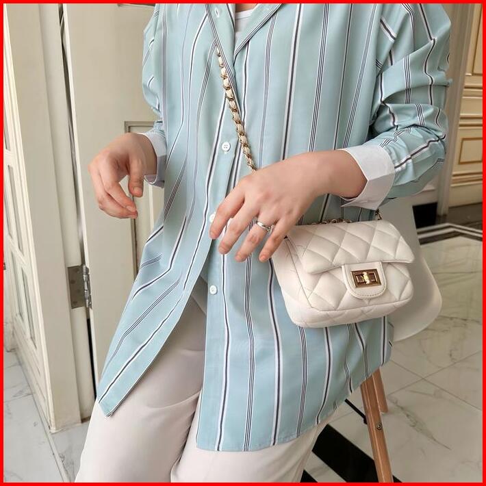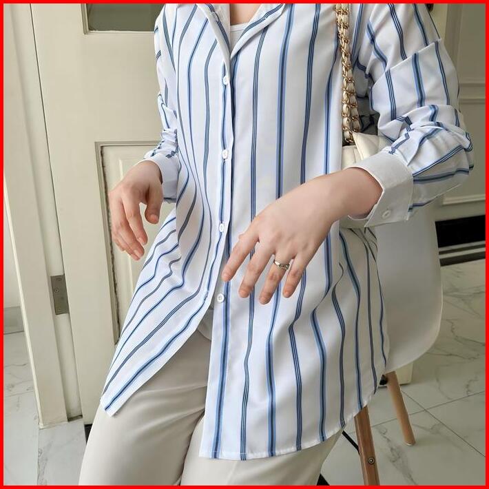 Kemeja Setrip Wanita Atasan Panjang Baju Katun
