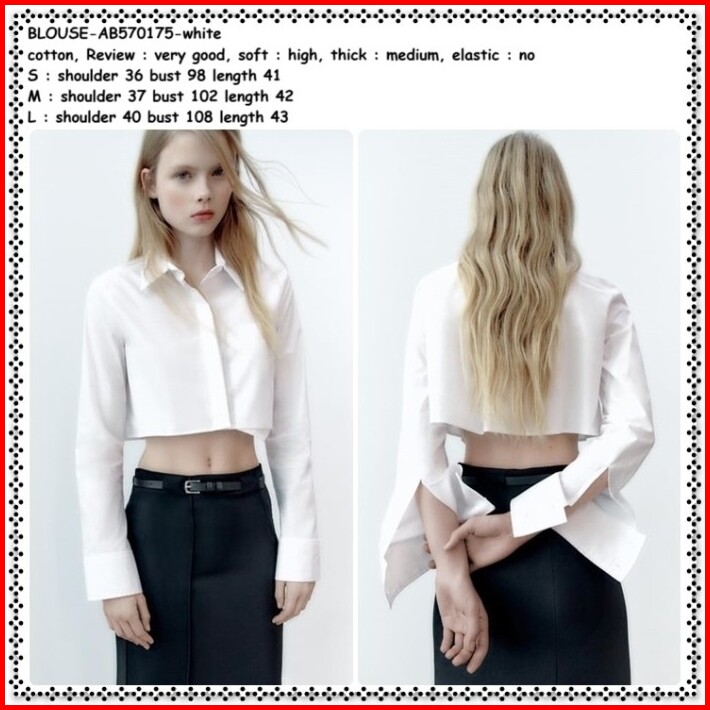 Ab570175 Baju Atasan Kemeja Crop Putih Polos Wanita Korea Import White