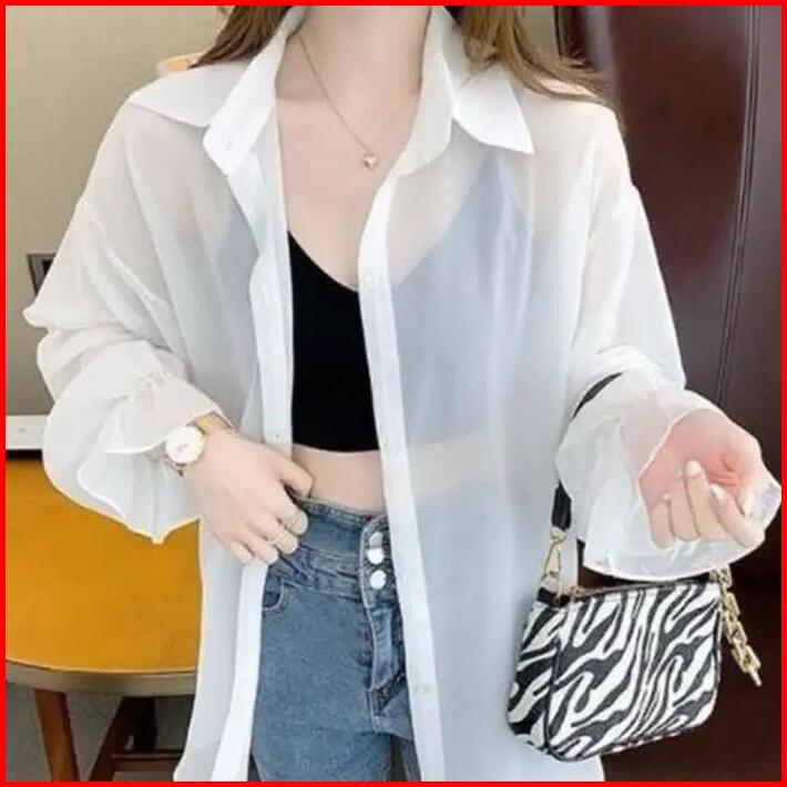 Kemeja Transparan Kemeja Pantai Korea Style Wanita Atasan Panjang Baju Casual Cewek Dewasa Shakila Katun
