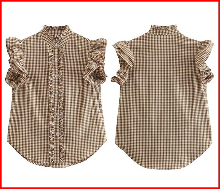 Ab767067 Baju Atasan Kemeja Kotak Lengan Pendek Wanita Korea Import