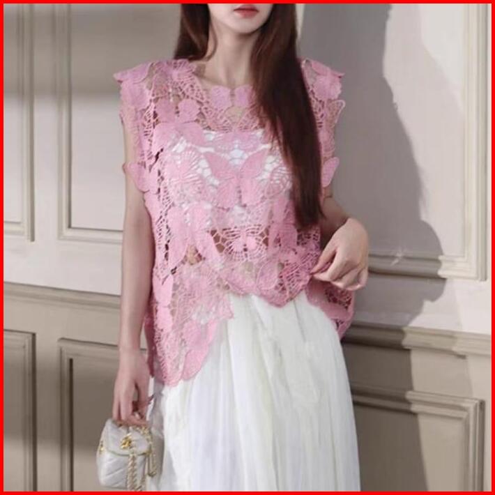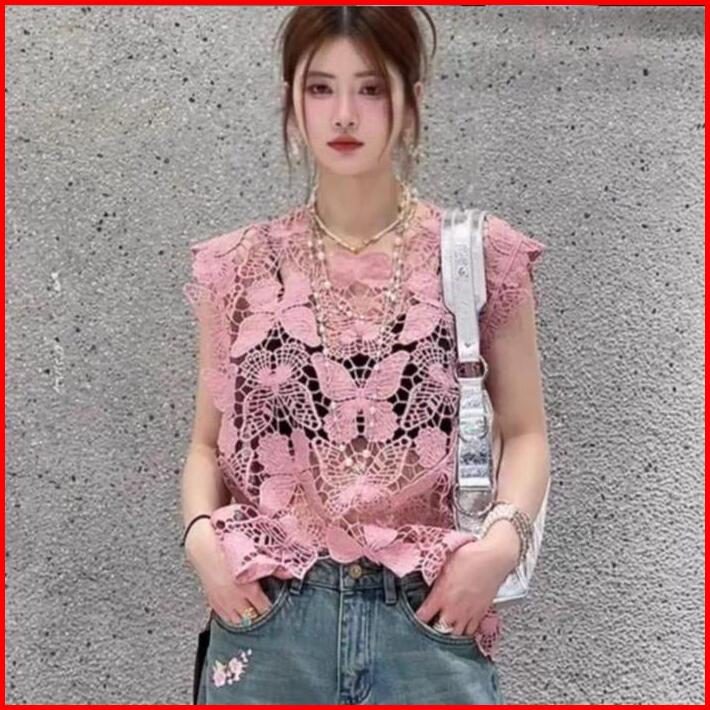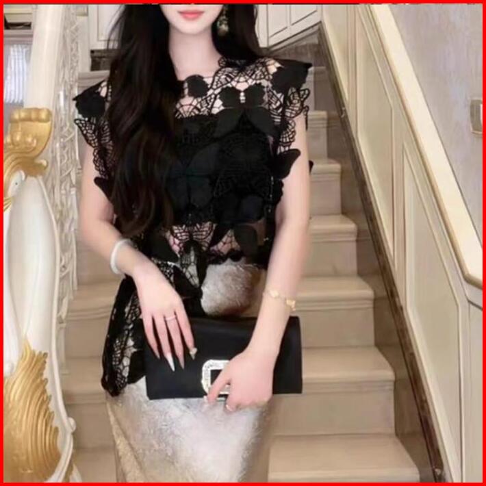 Atasan Malviva Asymmetric Lace Top Fit Size M-l Fashion Wanita Blouse Brukat Casual Kasual Outfit Elegan Baju Panjang