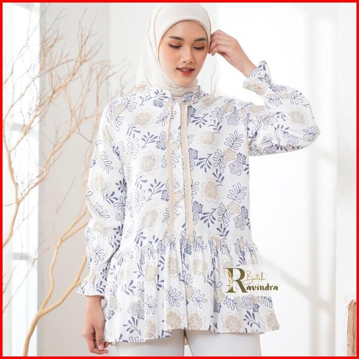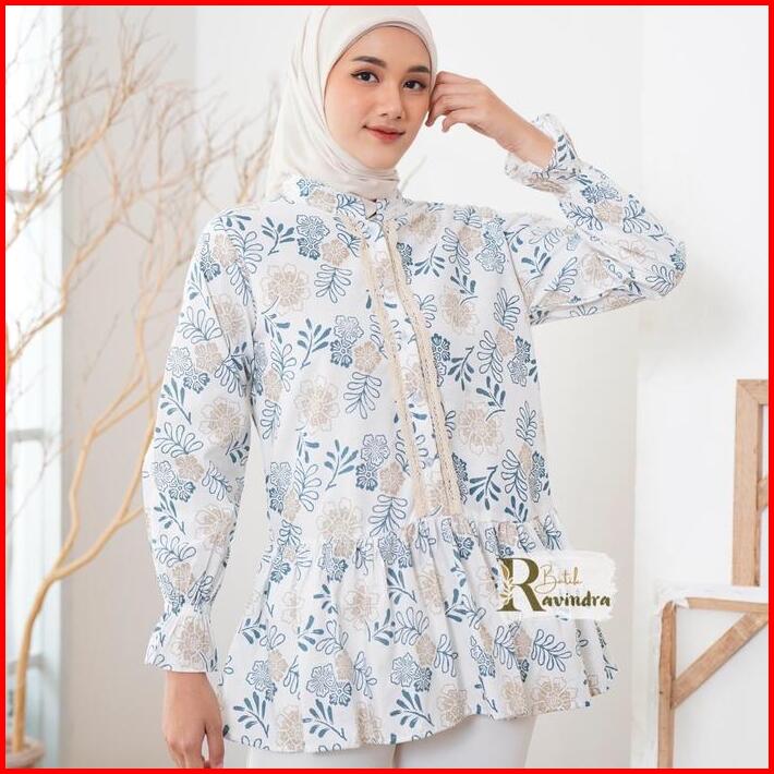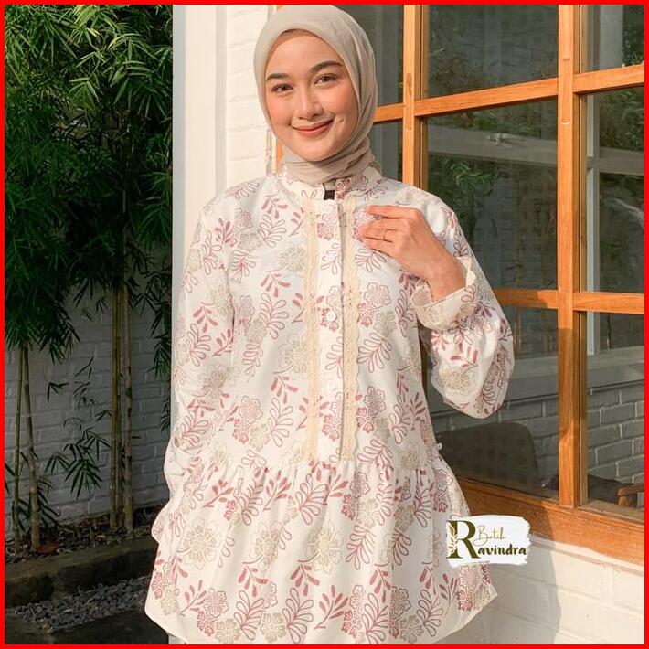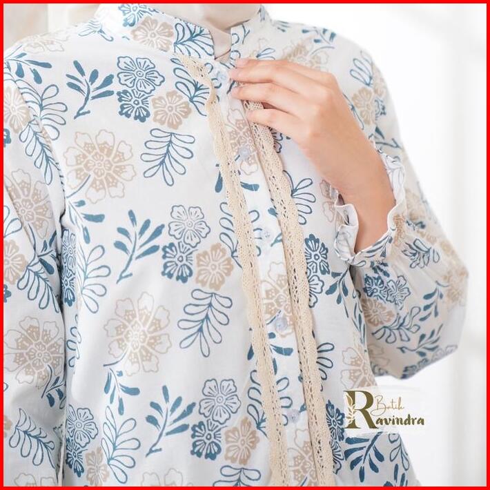 Batik Ravindra Blouse Batik Modern Bunga Renda Baju Kancing Wanita Atasan Motif Casual Panjang Katun