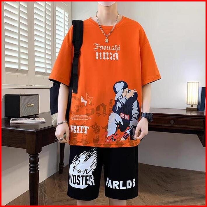 Setelan Baju Hiit Atasan Kaos Oblong Celana Pendek Pria Wanita Motif Distro Santai
