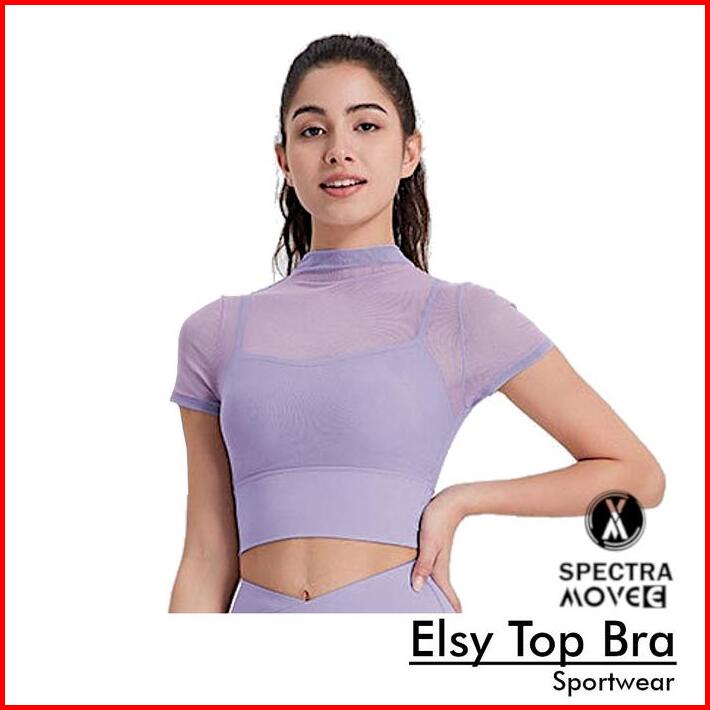 Baju Olahraga Wanita Elsy Top Sport Bra Kaos Crop Atasan Senam Jaring Outer Gym Zumba Aerobic Yoga