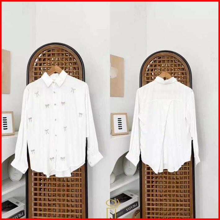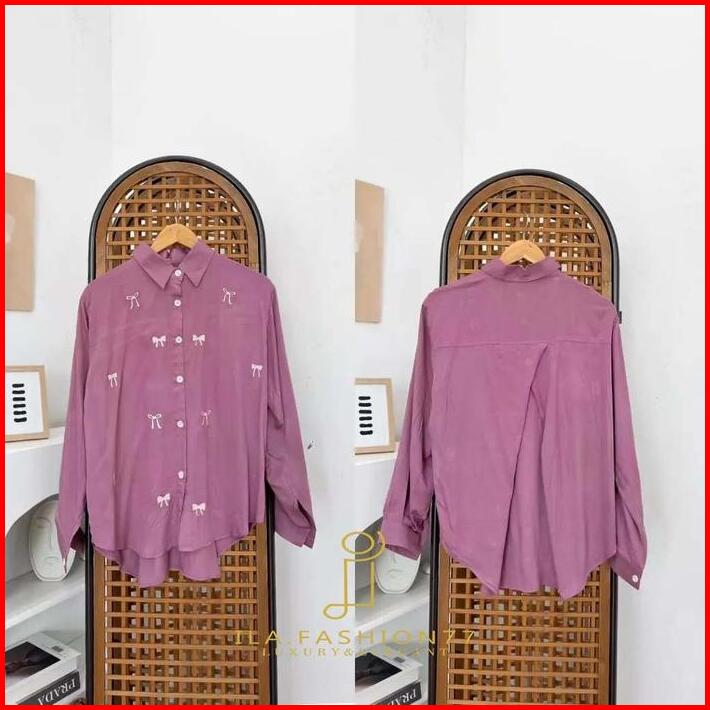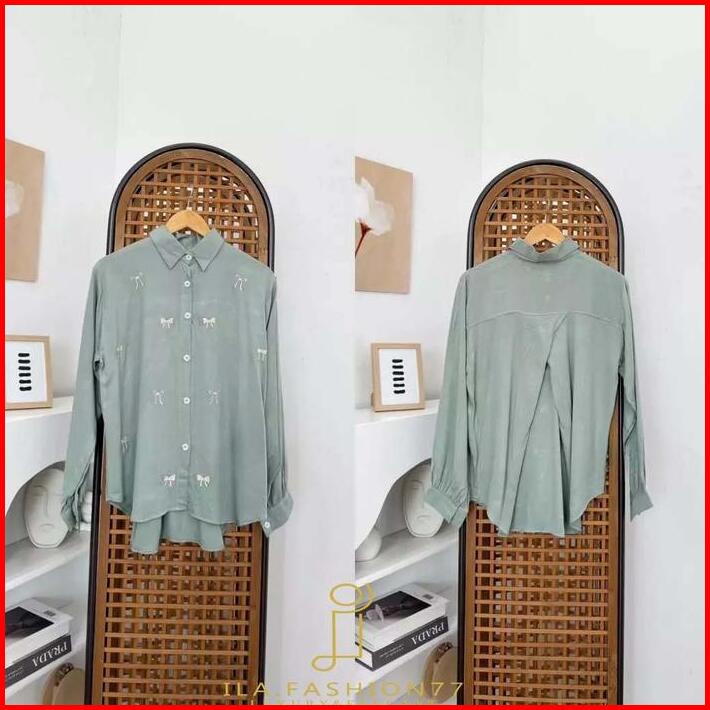 Blouse Bordir Coquette Wanita Muslim Cantik Rayon Twill Premium . Alena Top Kemeja Embriodiery Mewah Ilafashion Bordir F