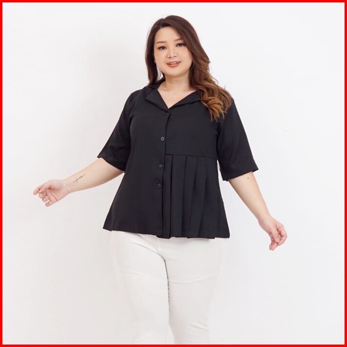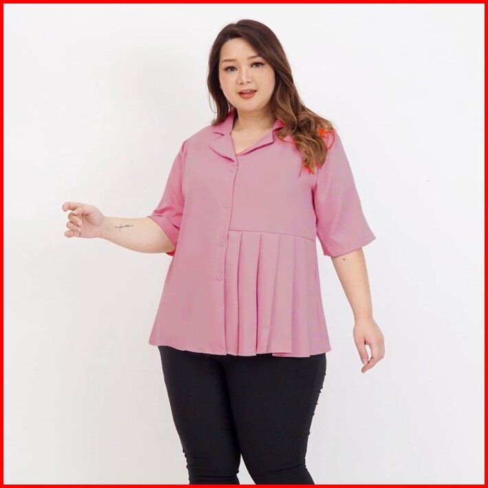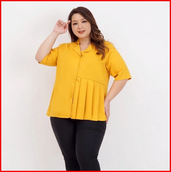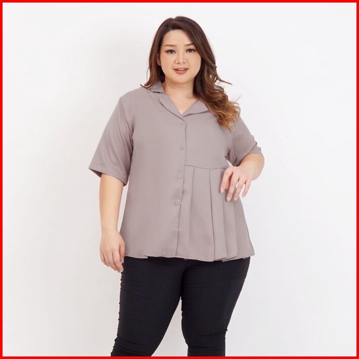 Blouse Wanita Big Size Jumbo 010 Xxl Xxxl Kemeja Atasan Baju Hamil Kekinian Fashion Korea Style Branded Lengan Pendek Mo