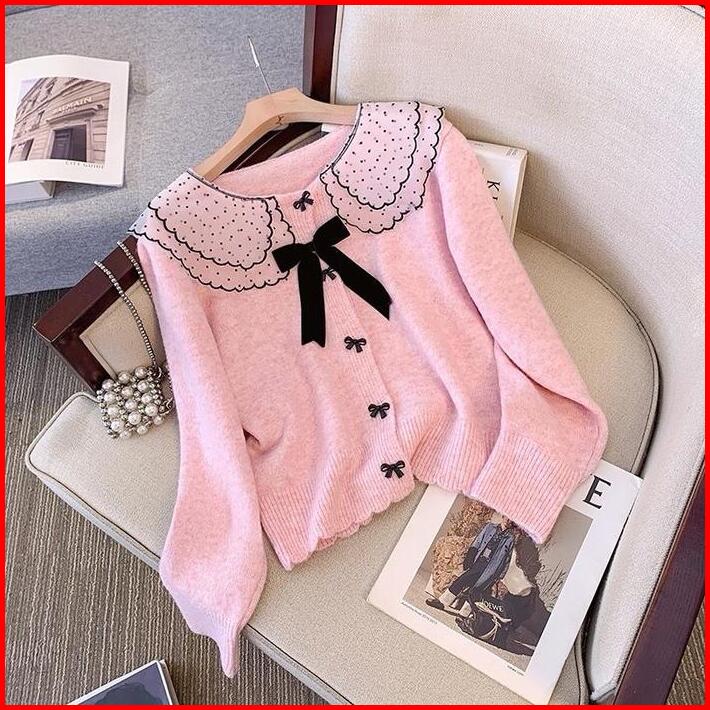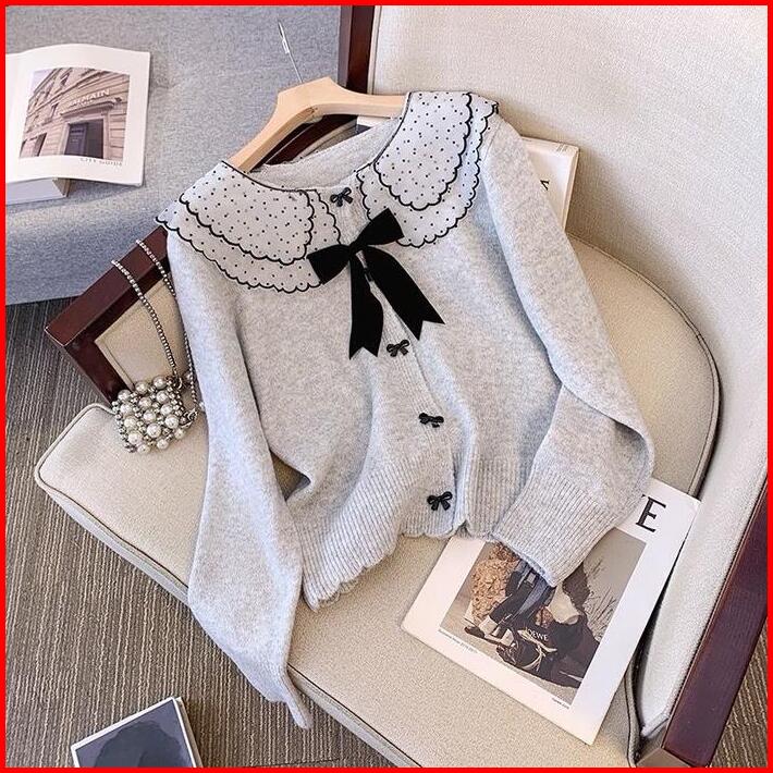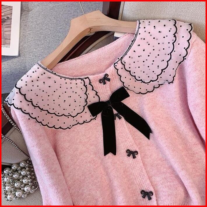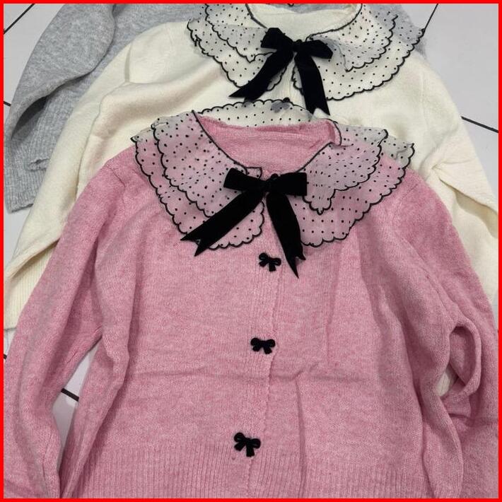 Atasan Wanita Cardigan Pita Knitwear Rajut Premium Sailor Double Ruffle Knit Baju Kardigan Kancing Outer Tebal Panjang S