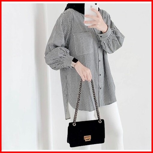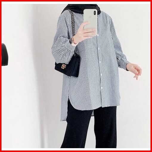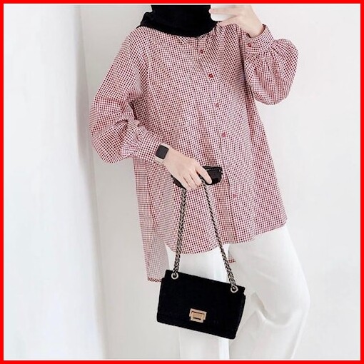 Atasan Motif Kotak Shirt Baju Wanita Lengan Panjang