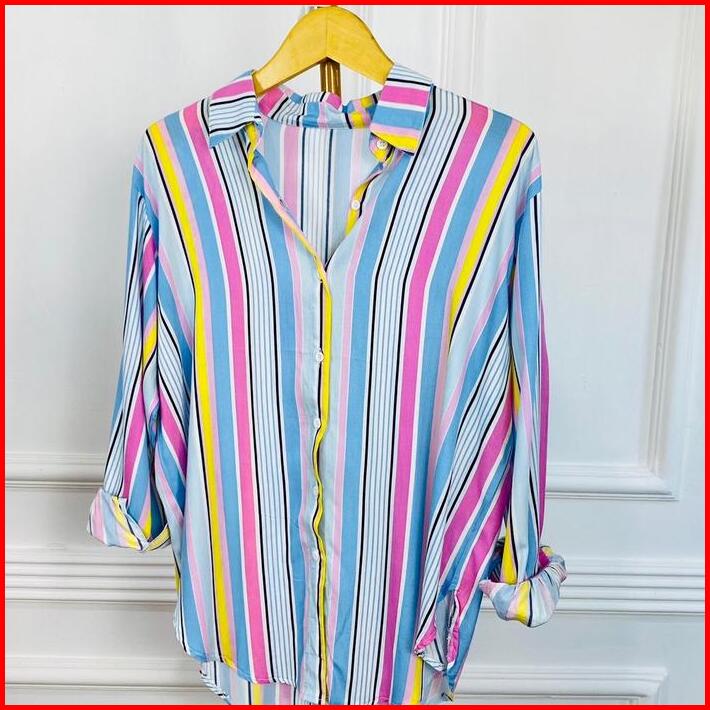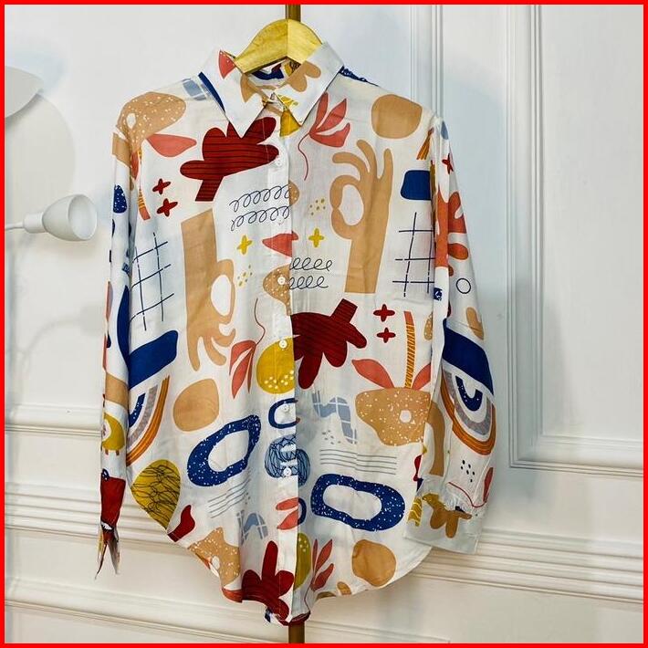Cuci Gudang Kemeja Rayon Motif Wanita Exclusive Variasi 02 Oversize Baju Kancing Karet Panjang Katun Atasan Linen Casual