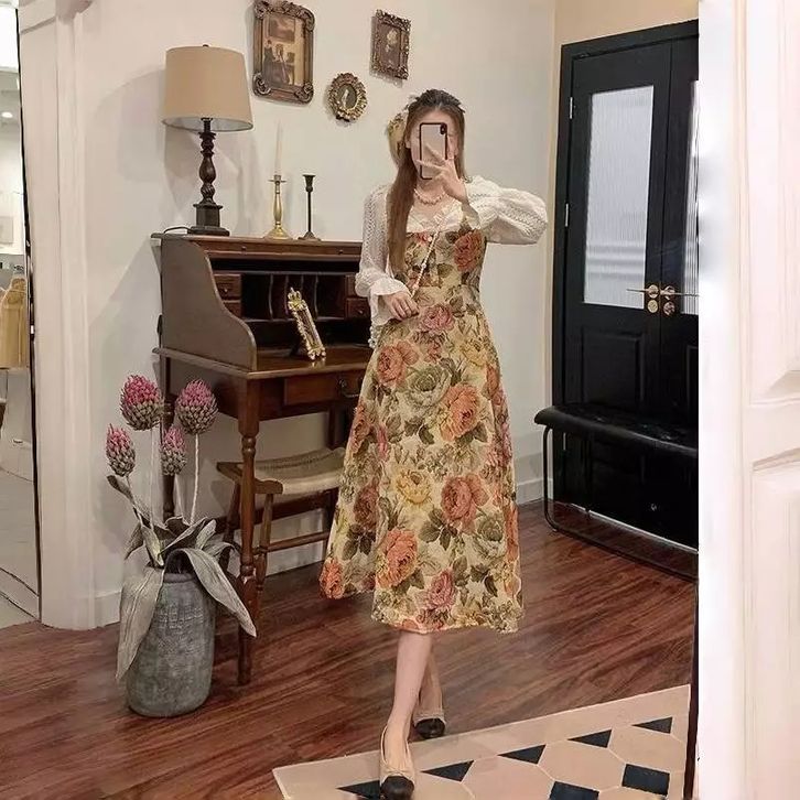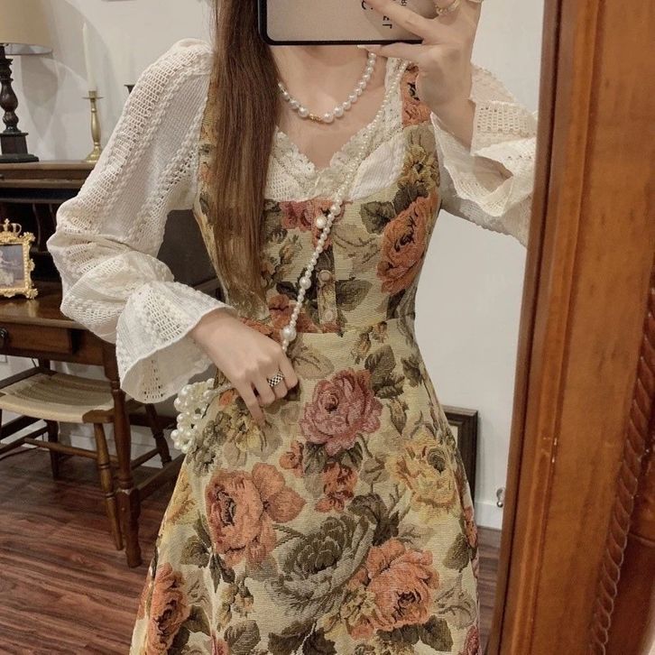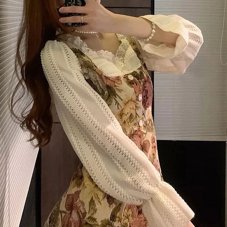 dress flower semi tweed ala french modern dress vintage m137 dress wanita korea kekinian