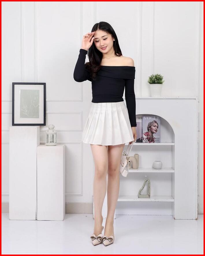 Duvelle Luna Off Shoulder Top Longsleeve Atasan Wanita Off Shoulder Knit Longsleeve Atasan Cewek Off Shoulder Long Sleev