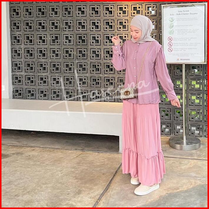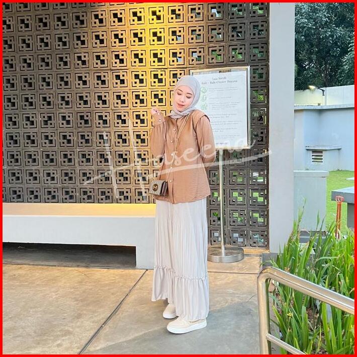 Haseena Atasan Wanita Kemeja Qalesya Polo Linen Shirt Oversize Kemeja Wanita Kerah Shanghai Lengan Balon Bahan Premium B