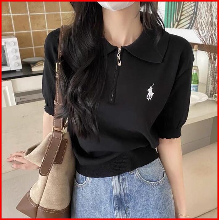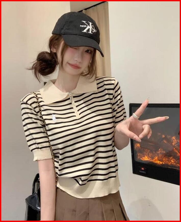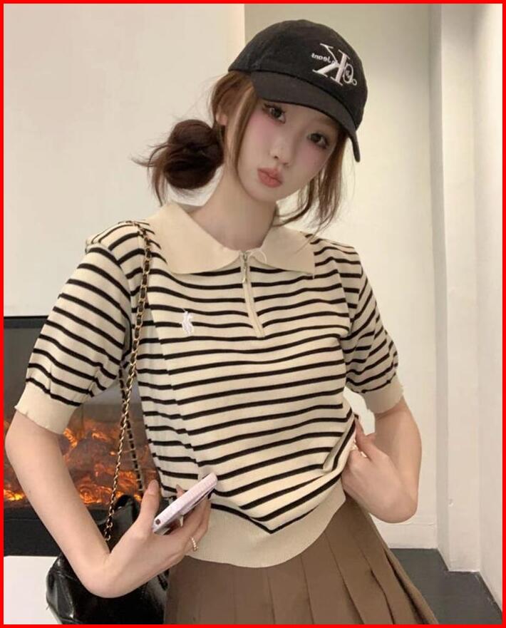 Arsofashionshops Blouse Pendek Krah Salur Black 3254 Pakaian Ootd Wanita Korea Atasan Lengan Pendek Baju Rajut Motif Sal