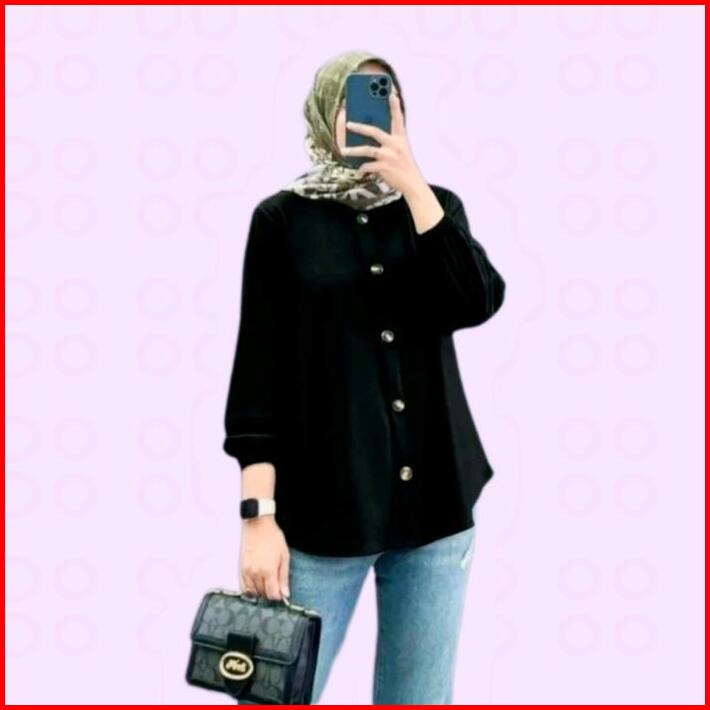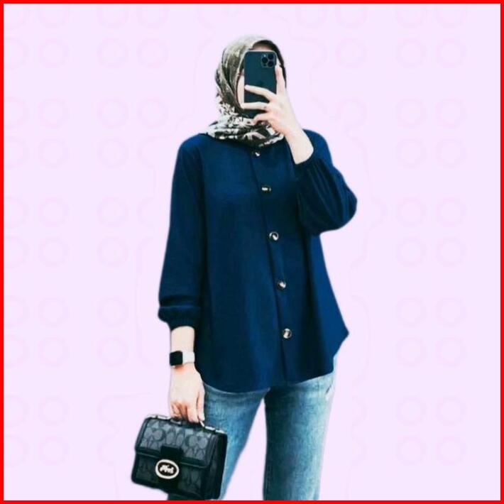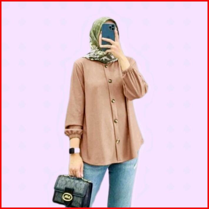 Naila Klamby Baju Wanita Muslim Kemeja Polos Atasan Lengan Karet Baju Wanita Kerja Kantor Blouse Nyaman Crinkle Airflow