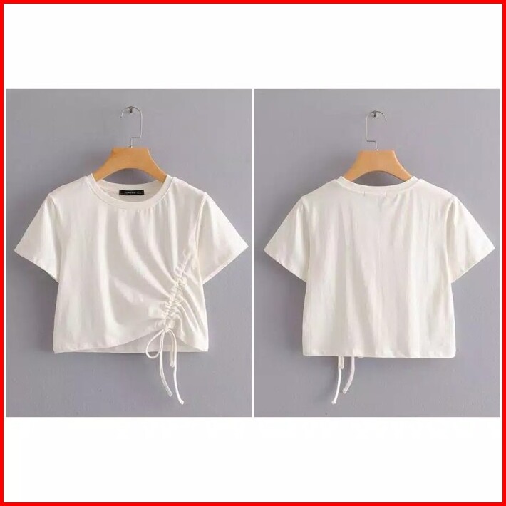 Ab755807 Baju Atasan Serut Wanita Crop Blouse Korea Hitam Putih Merah