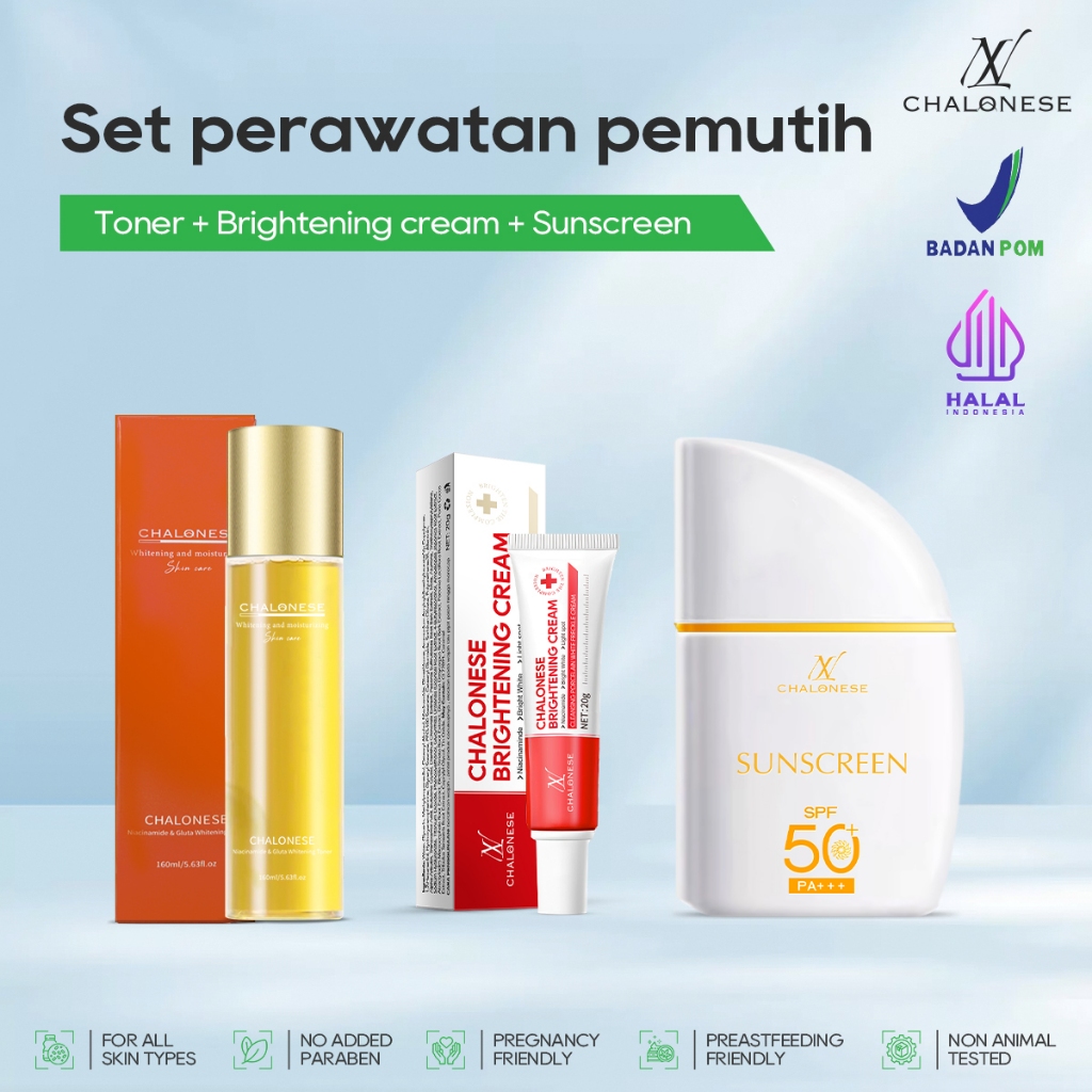 CHALONESE BUNDLING 3 IN 1 STEP TO GLOWING TONER+SUNSCREEN+BRIGTENINGSPF 50 PA +++ MOISTURIZING,MELINDUNGI PAPARAN S