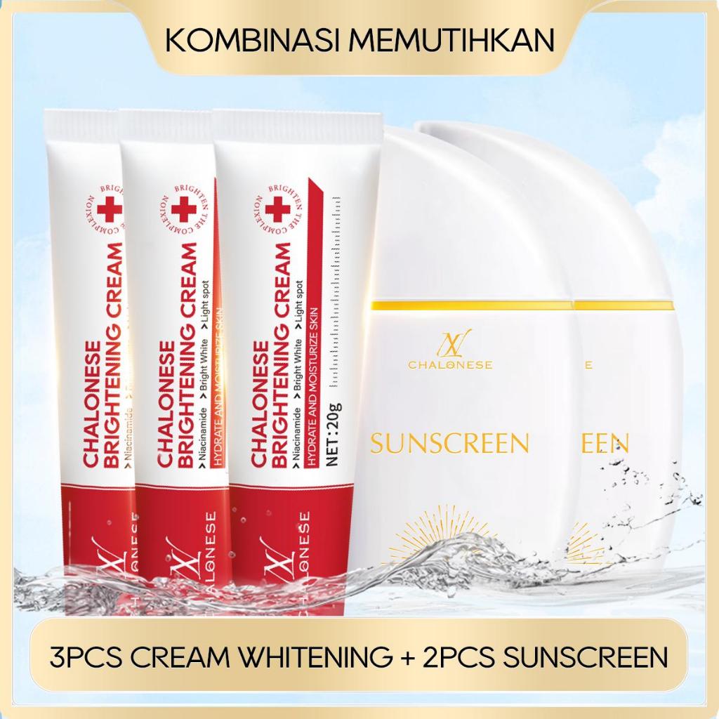 CHALONESE Menjaga kelembapan Paket Glow Whitening Series 3pcs Cream Whitening +2 pcs sunscreen cream pelembab BPOM