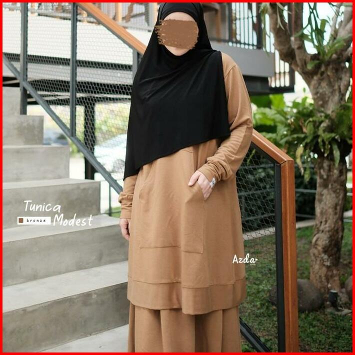 Tunica Modest Sporty Azda Tunik Set Rok Kulot Olahraga Setelan Baju Olahraga Wanita Muslim Muslimah Lengan Panjang Atasa