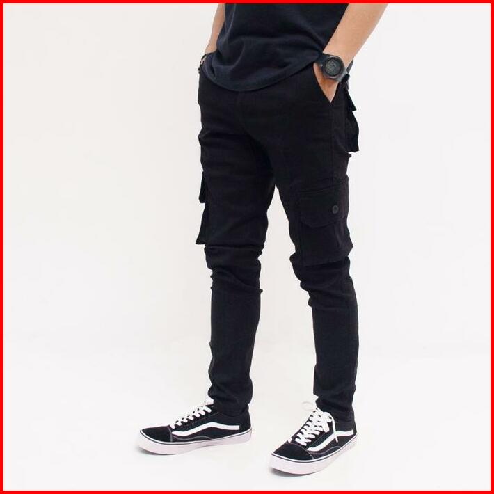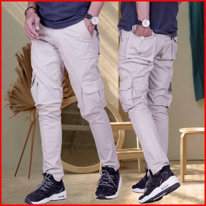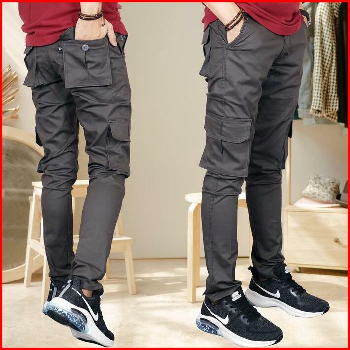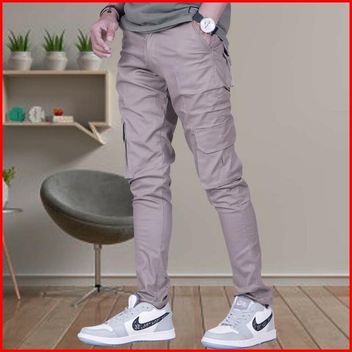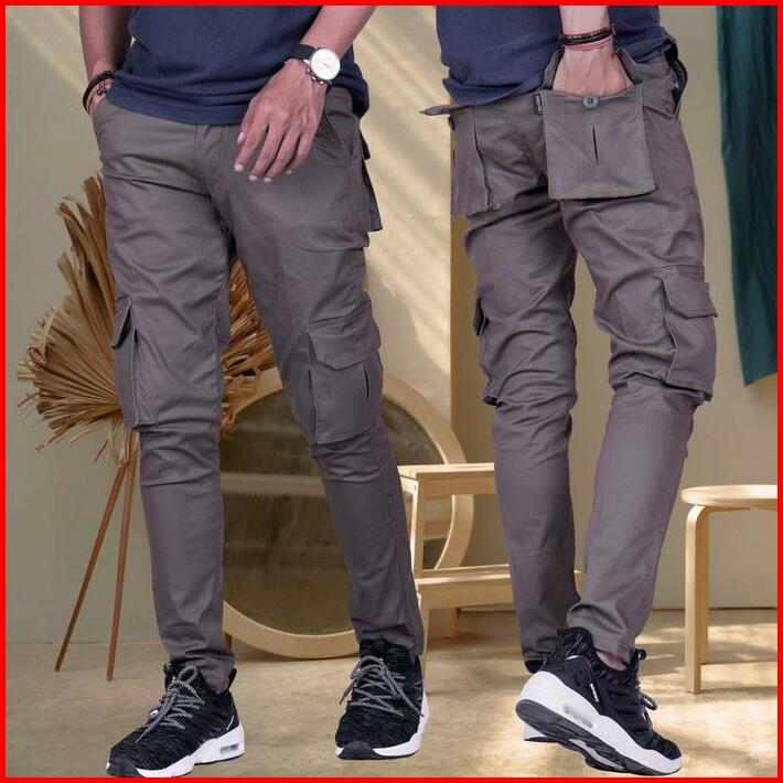 Celana Cargo Panjang Pria Slim-fitting Santai Polos
