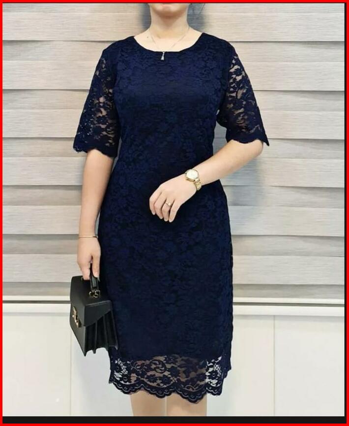 Dress Brokat Lengan Pendek Tebal Non Glitter Dress Pesta Paskah Terbaru Dress Brukat Modern Full Furring Dress Brukat Ko