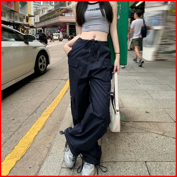 Celana Panjang Cargo Wanita Korea Style Model Kekinian Bawah Tali Serut