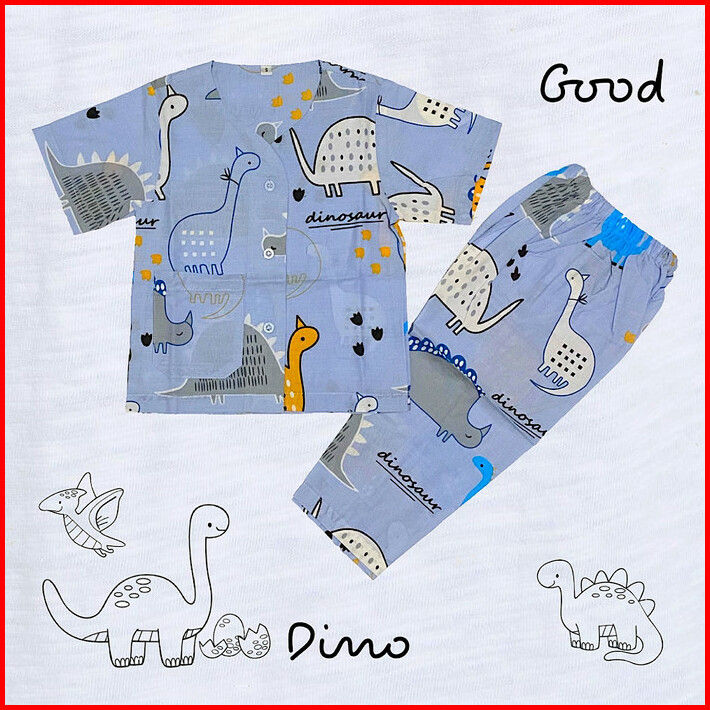 Piyama Anak Laki Laki Baju Tidur Anak Katun Tanpa Kerah Good Dino