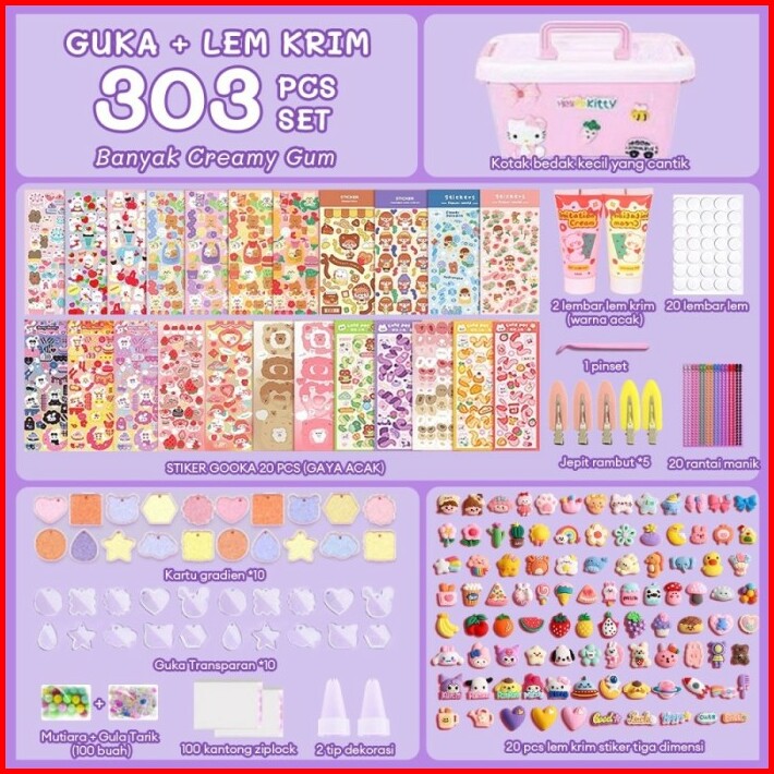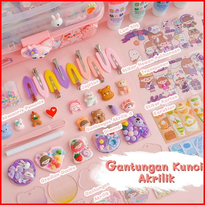 Tatajoy 1004pcs Guka Set Diy Keychain Set Jepit Rambut Gadis Diy Deluxe Diy Deco Lem Krim Guka Stiker Set Gooka Set Crea