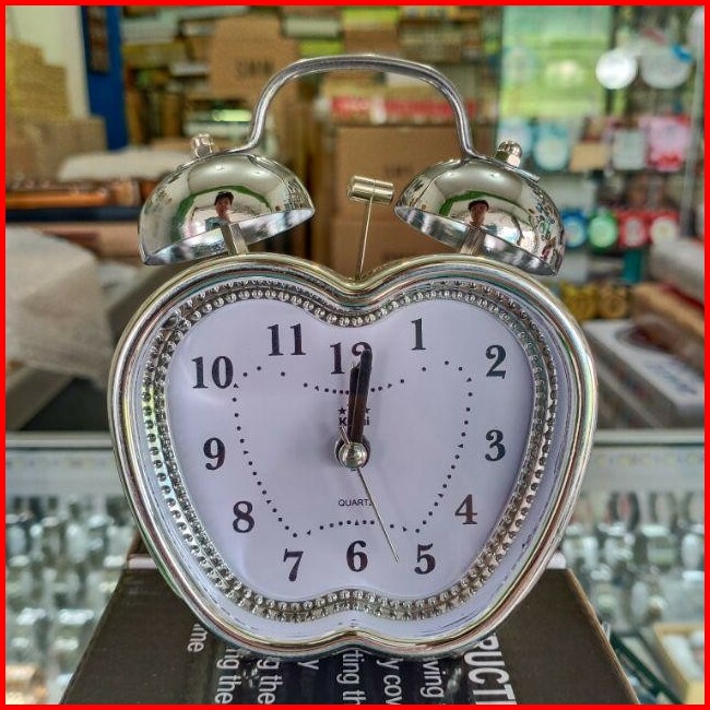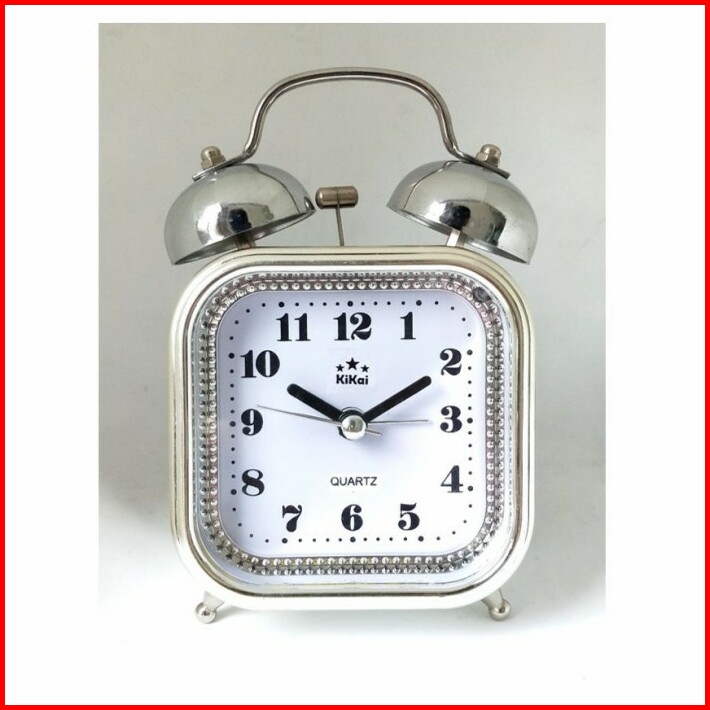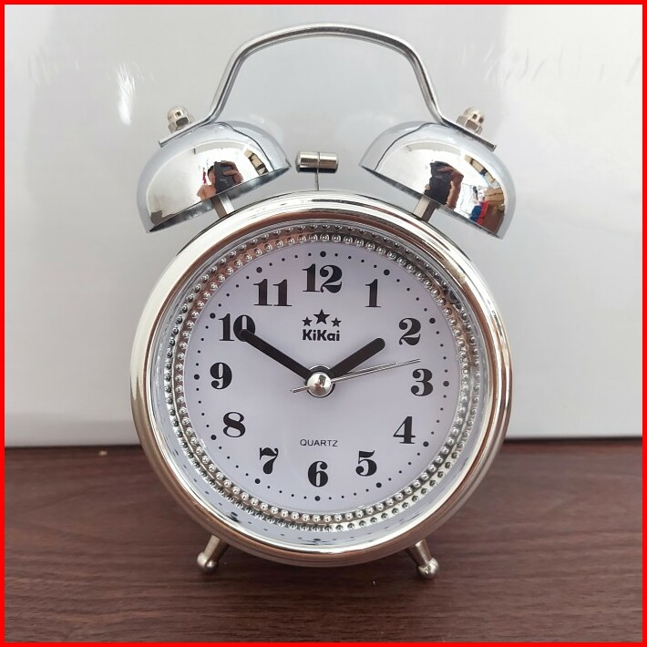 Jam Alarm Weker Dering Chrome Stainless Jam Meja Jam Beker Besi Kring