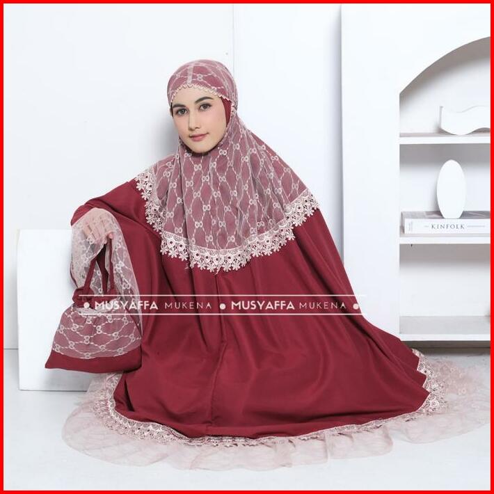 Mukena Dewasa Merisha Tile Brukat Atasan Bawahan Rempel Renda Muslim Katun Mewah Cantik Motif Panjang Travel Mukenah Pou