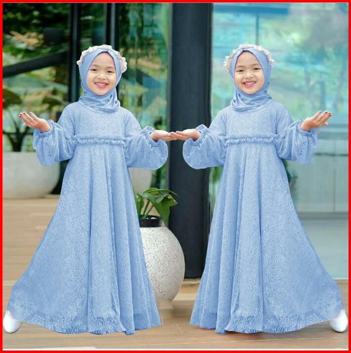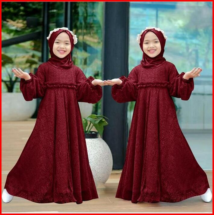 Gandy Kid 3-13thn Dress Muslim Anak Gamus Anak Brukat Gaun Anak Perempuan Gaun Pesta Anak Perempuan