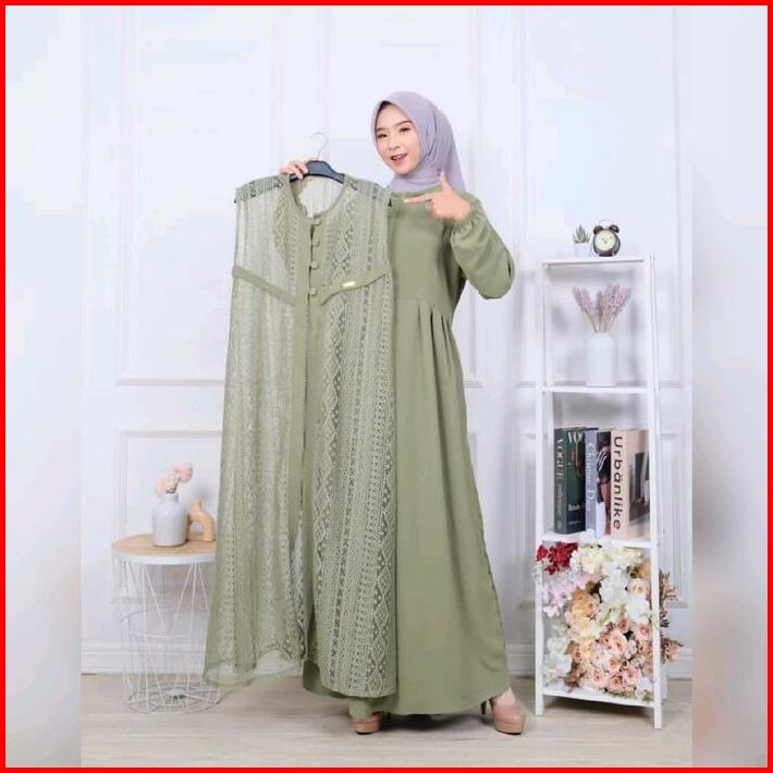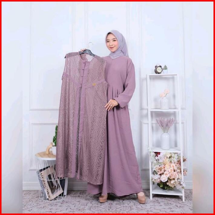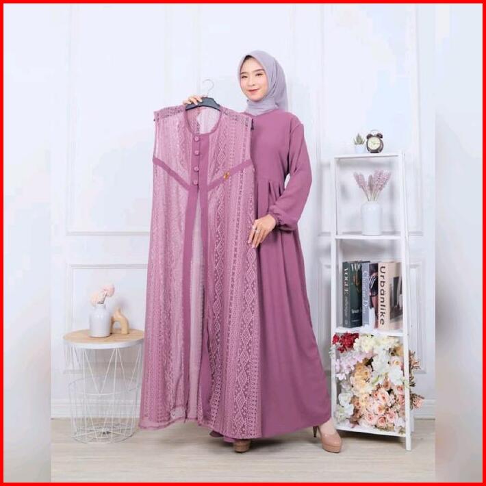 Gamis 2 In 1 Crinkle Airflow Bonus Outer Brukat Malika Lace Busui Untuk Muslim Wanita