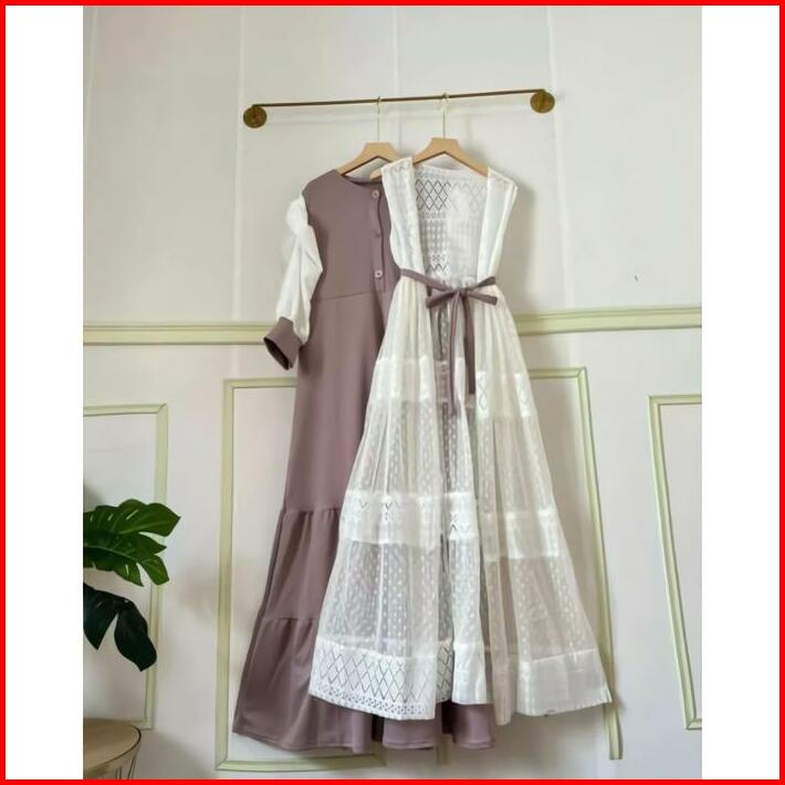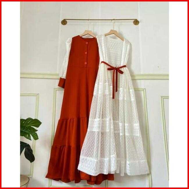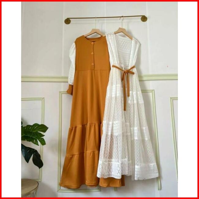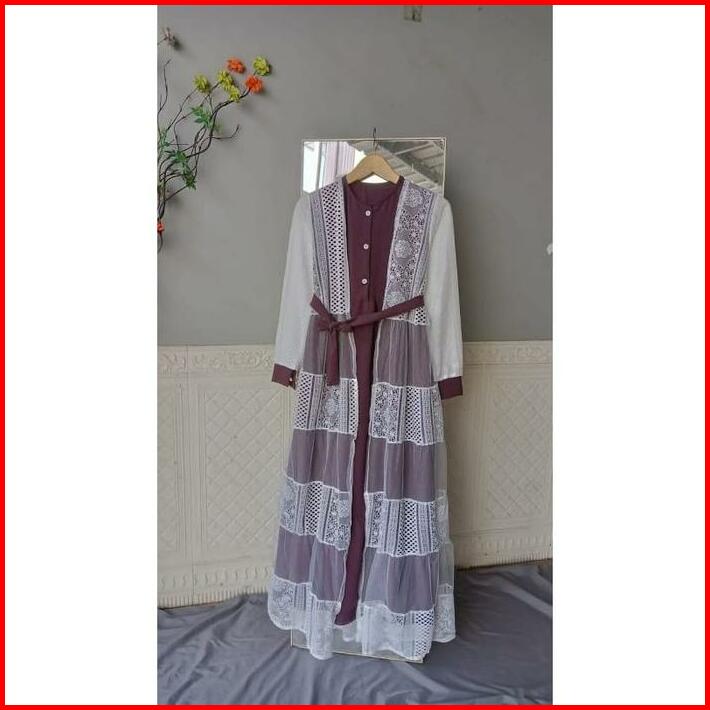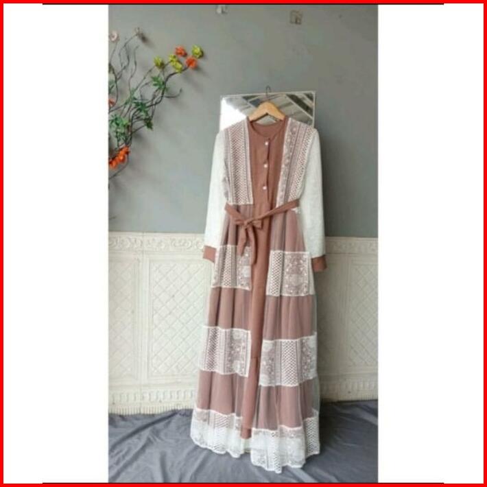 Melanni Dress Gamis Dewasa Remaja Mix Brukat Malika Crinkle Kerah Muslim Nyaman Gaun Casual Mewah