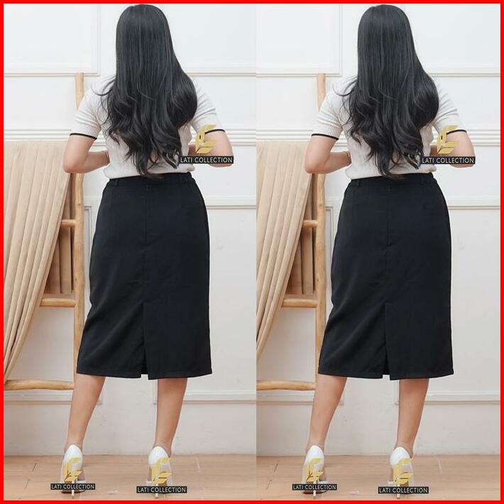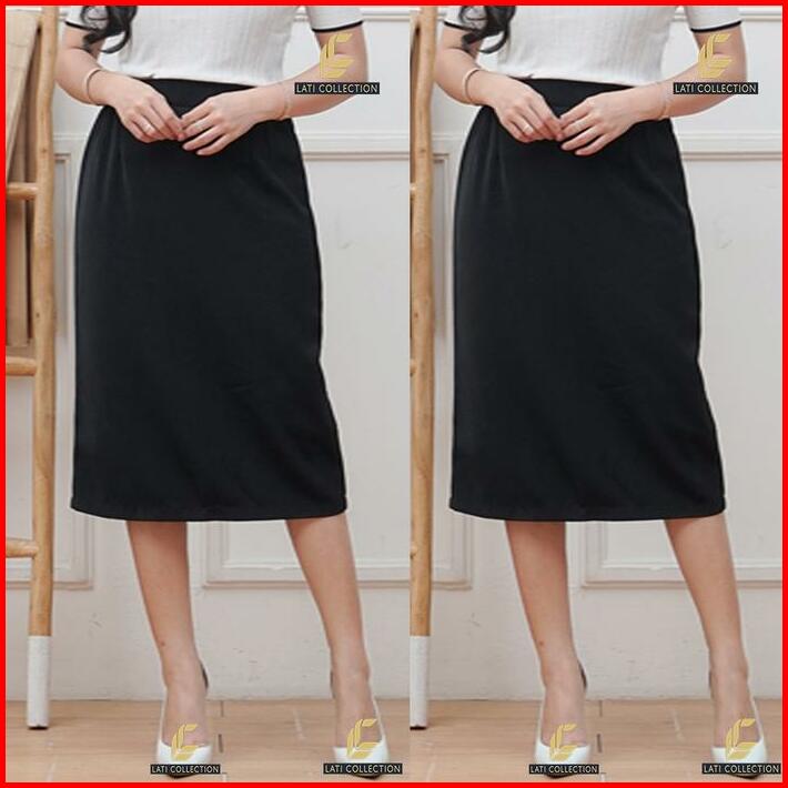 Rok Span Hitam Kerja Formal Polos Wanita Pendek Sebetis 7 8