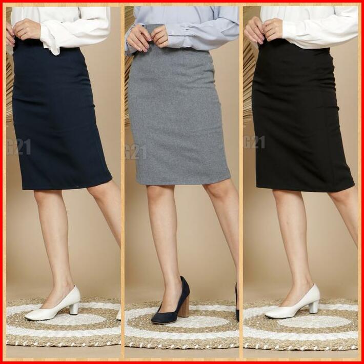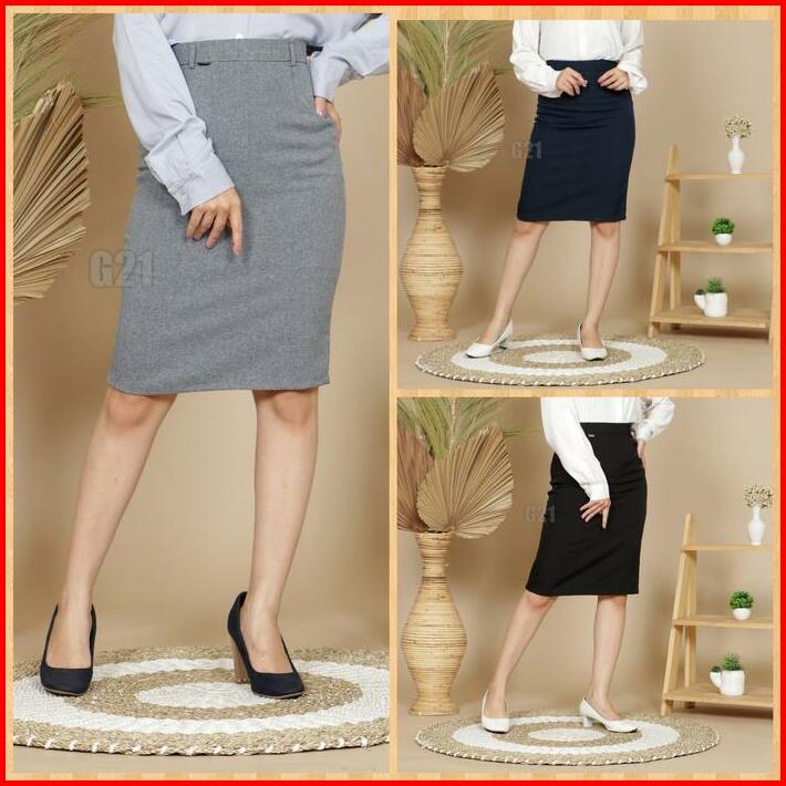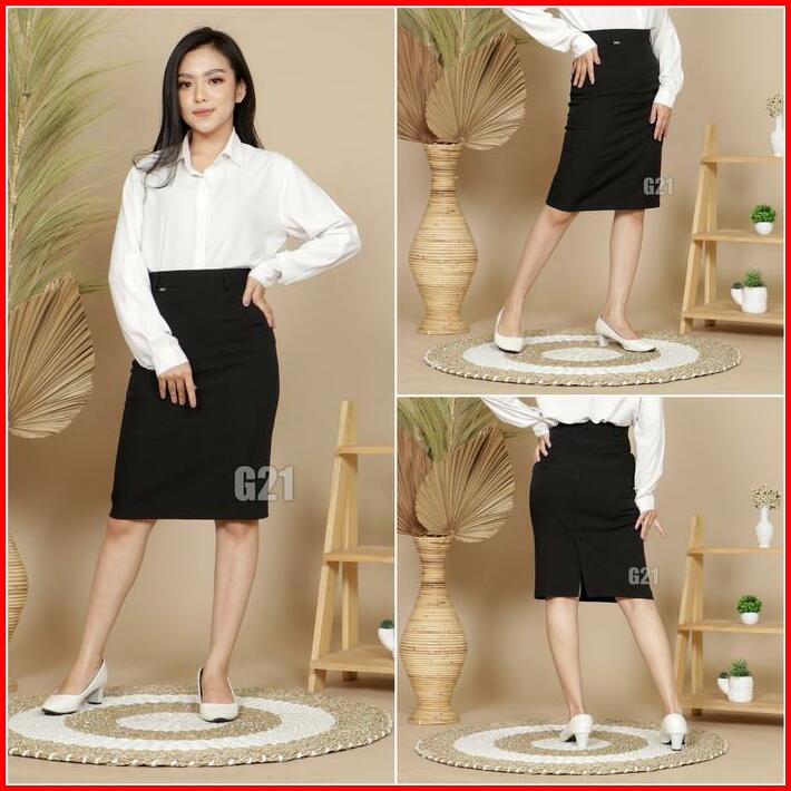 Rok Kerja Pendek Hitam Span 3 4 Bahan Formal Kantor