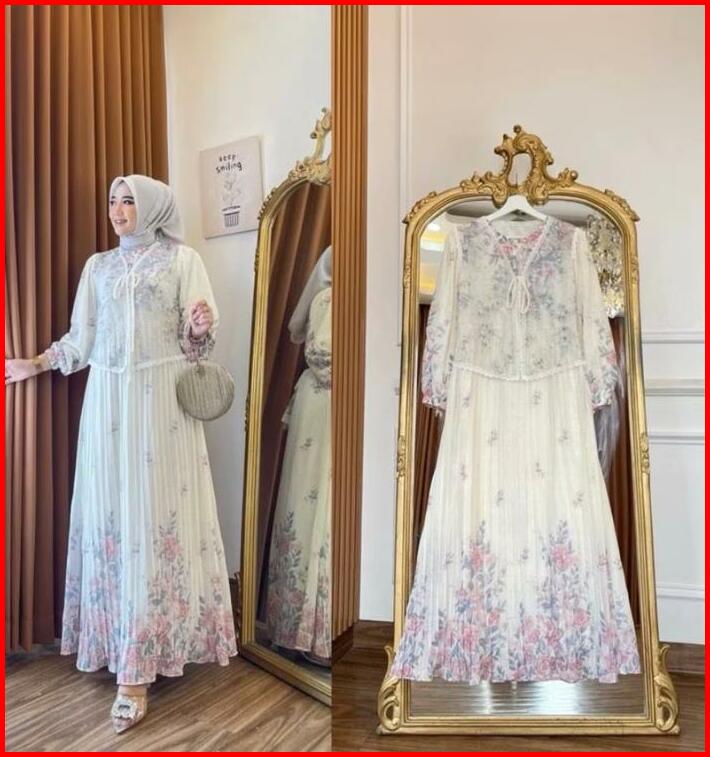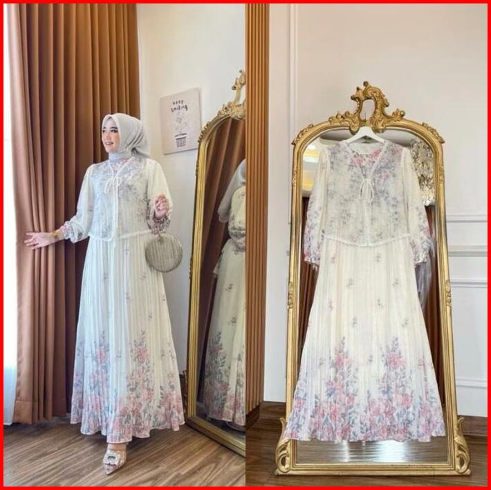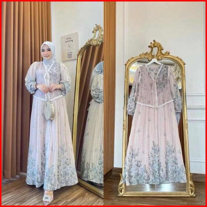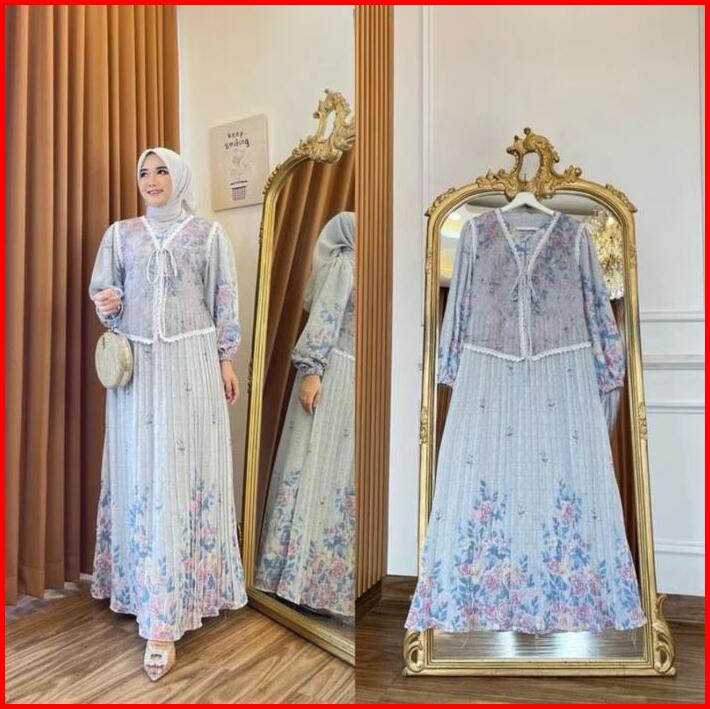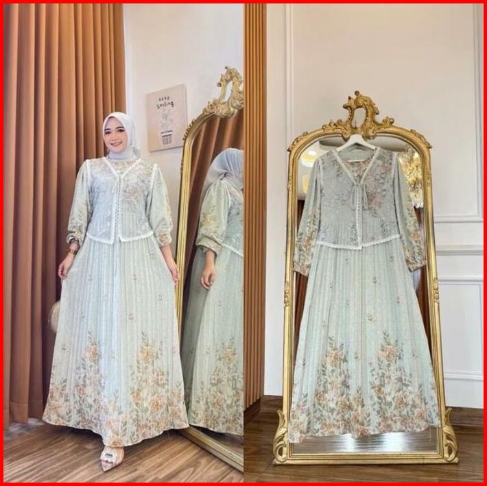 Gamis Muslim Alena 1 Plisket Model Rompi Brukat Mix Renda 2025