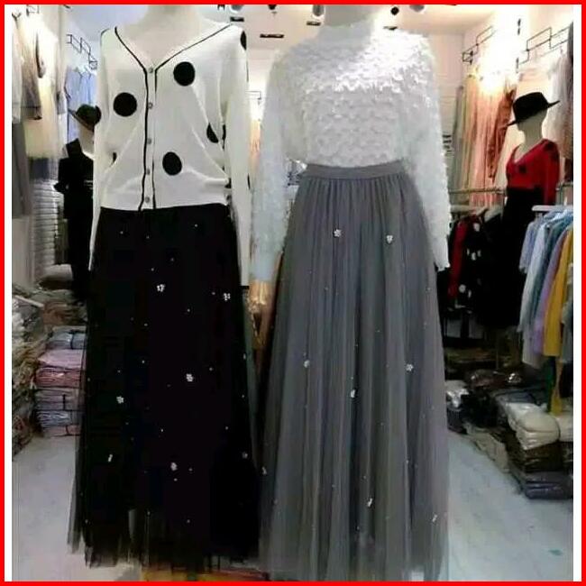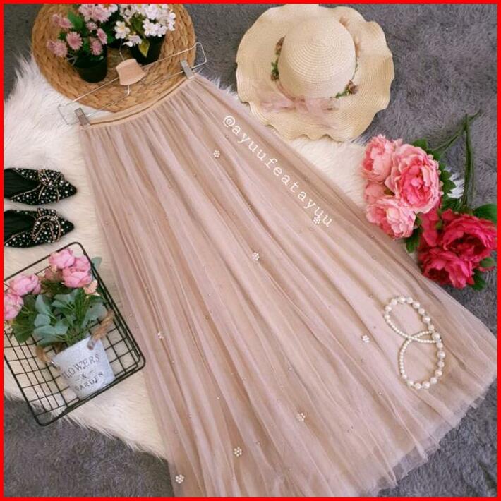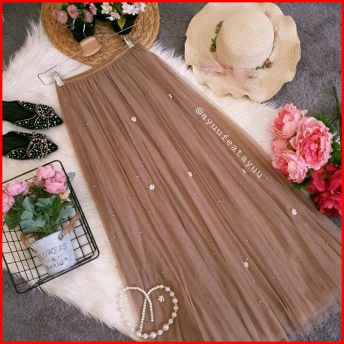 Rok Wanita Panjang Terbaru Mutiara Wanita Kekinian Panjang Tile Karet Melar Furing Tebal Mewah Murah