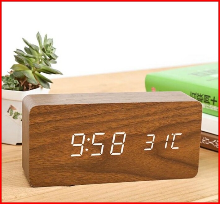 Jd-03 Jam Meja Motif Kayu Digital Led Weker Desain Wood Alarm Led