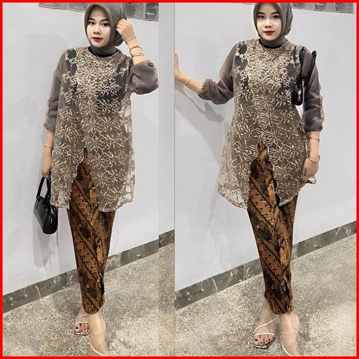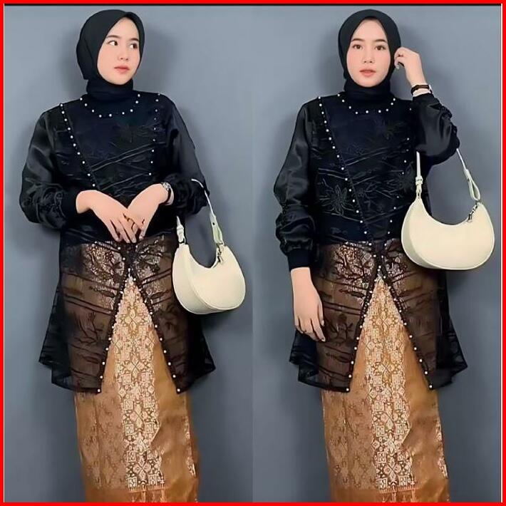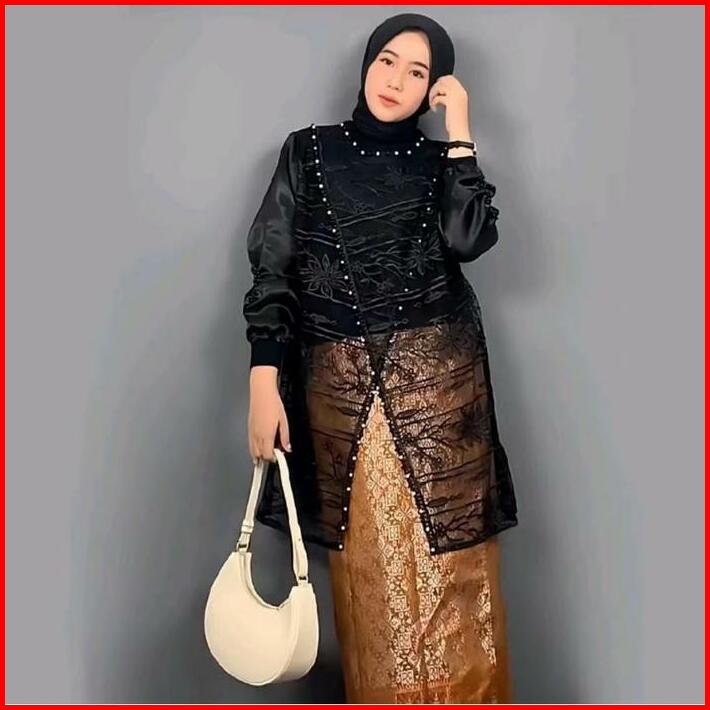 Outer Keyra Tunik Brukat Kondangan Organza Full Payet Brokat Fiona Zize Kondangan Hari Raya Wisudaan