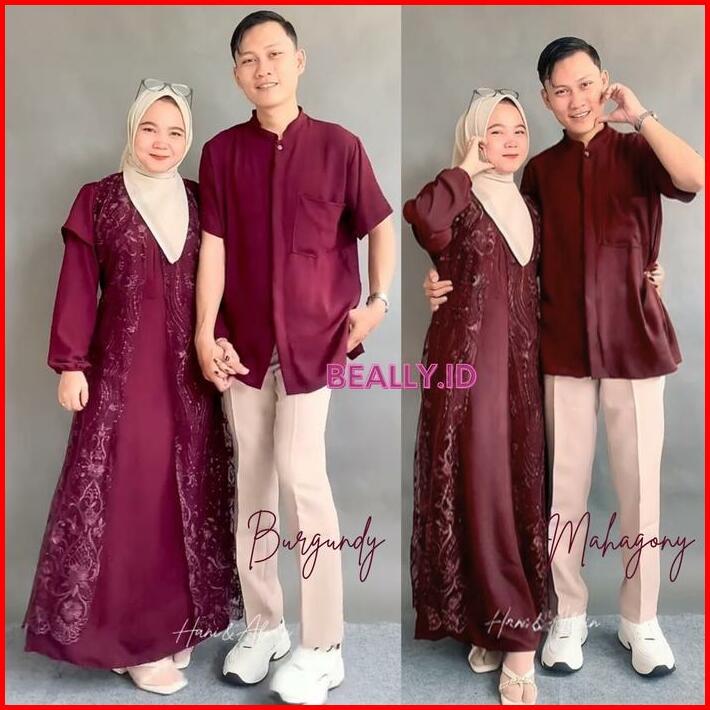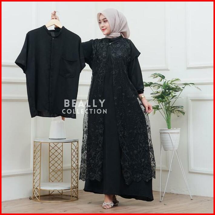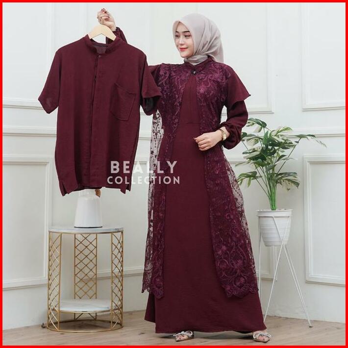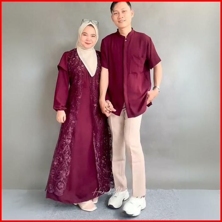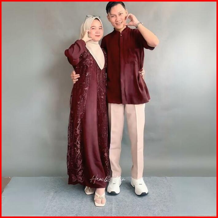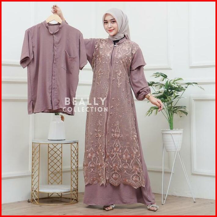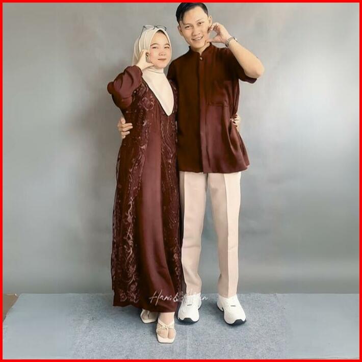 Lagsung Kirim Kanaya Set Couple Gamis Koko Cringkle Mix Brukat Lebaran 2025 Set Couple Gamis Wanita Pria Mewah Kondangan