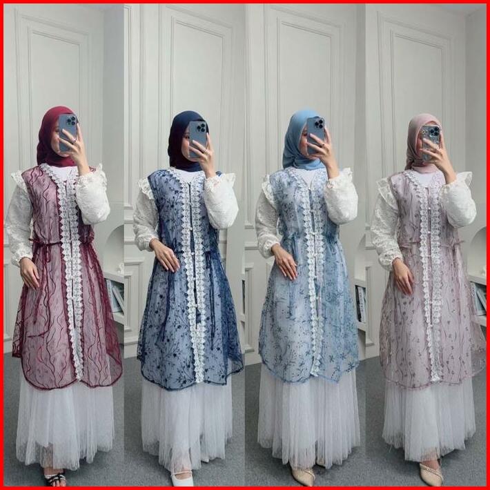 Namira One Set Outer Brukat Rok Tile Celana Cutbray Scuba
