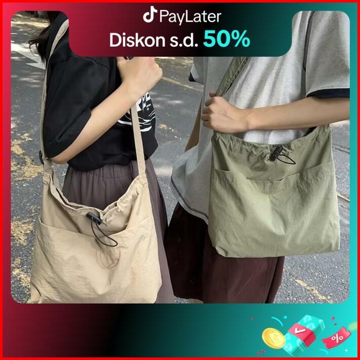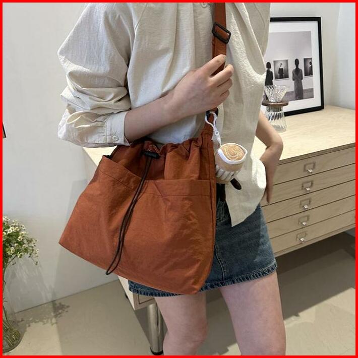 H T Tas Ember Serut Berkapasitas Besar Tas Selempang Kasual Wanita Jepang Tas Komuter Bahu Jalan