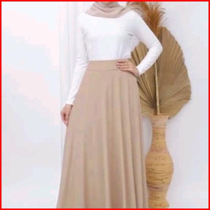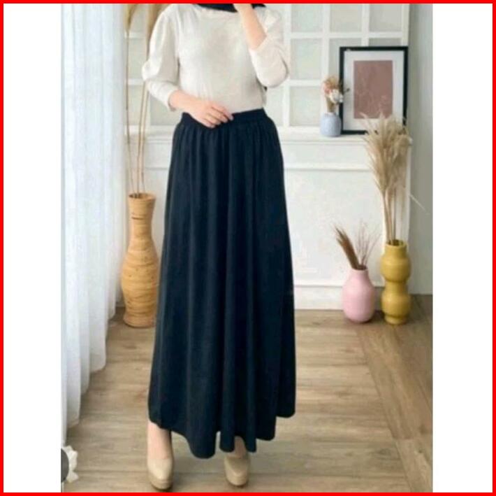 Rok Polos Wanita Dewasa Bahan Crinkle Airflow Rok Panjang Mayung Kekinian Maxi Karet