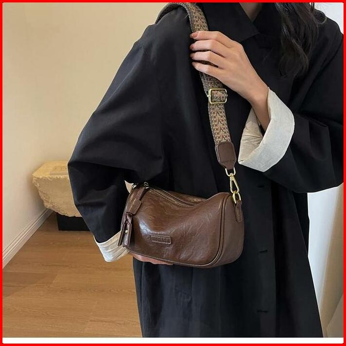 2025 Model Tas Bantal Boston Yang Sedang Tren Dengan Tali Bahu Lebar Tas Selempang Wanita Tas Silang Serbaguna Dan Modis