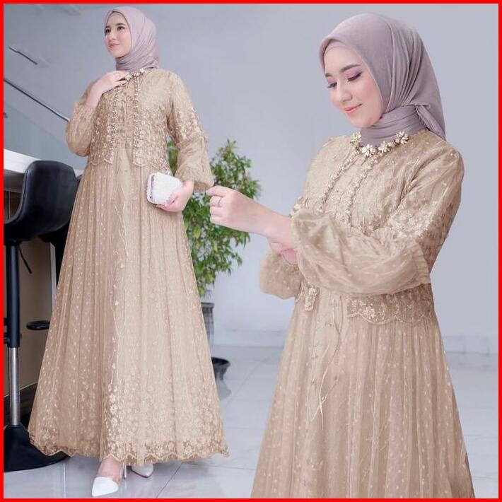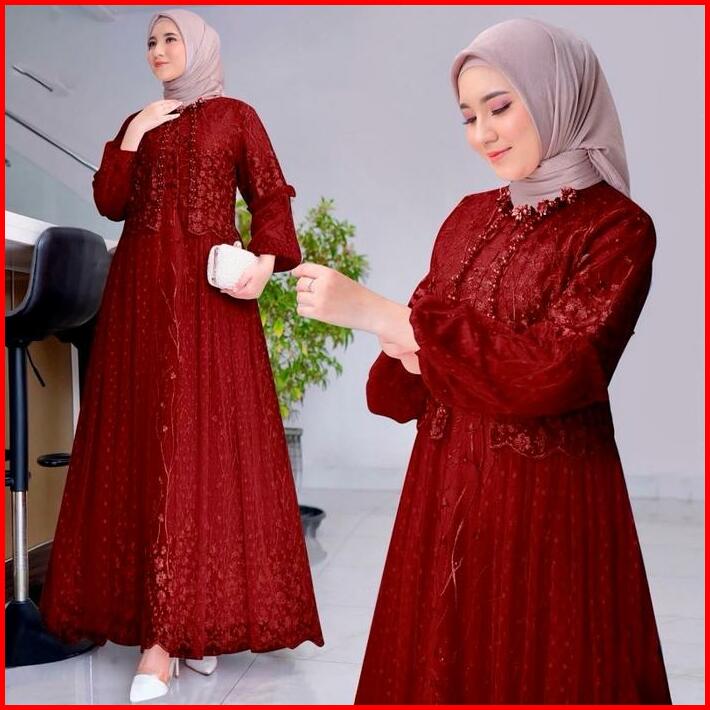 Termurah Vella Gamis Terbaru Brukat Premium Full Layer Depan Dress Seragam Pesta Kondangan Remaja Dewasa Wanita Jumbo
