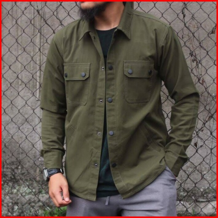 Jaket Kanvas Semi Parka Jaket Trucker Kanvas 2 Pocket Hijau Army