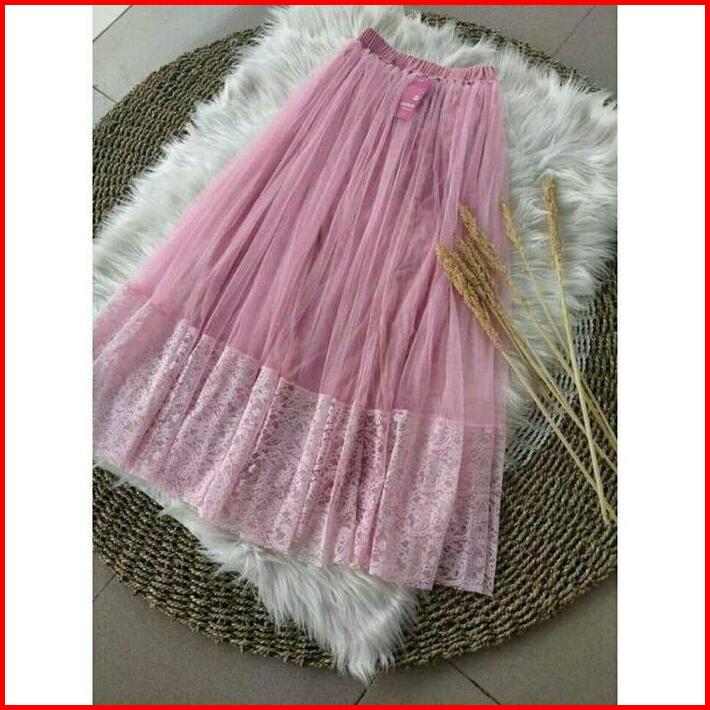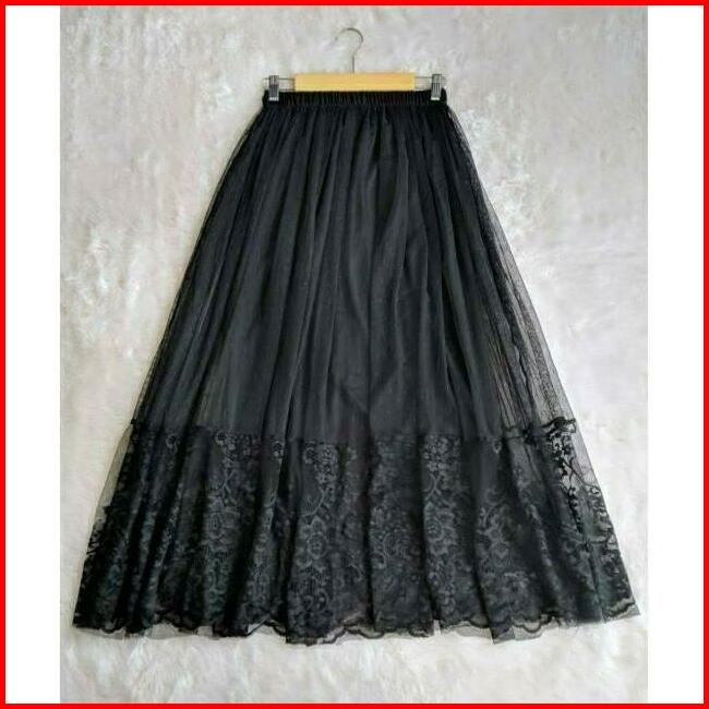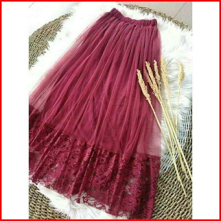 Rok Tutu Brokat Dewasa Premium Renda Tile Wanita Karet Pesta Panjang Mewah Maxi Kondangan Remaja Baju