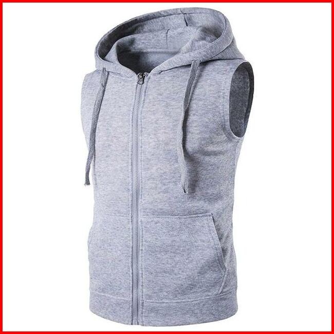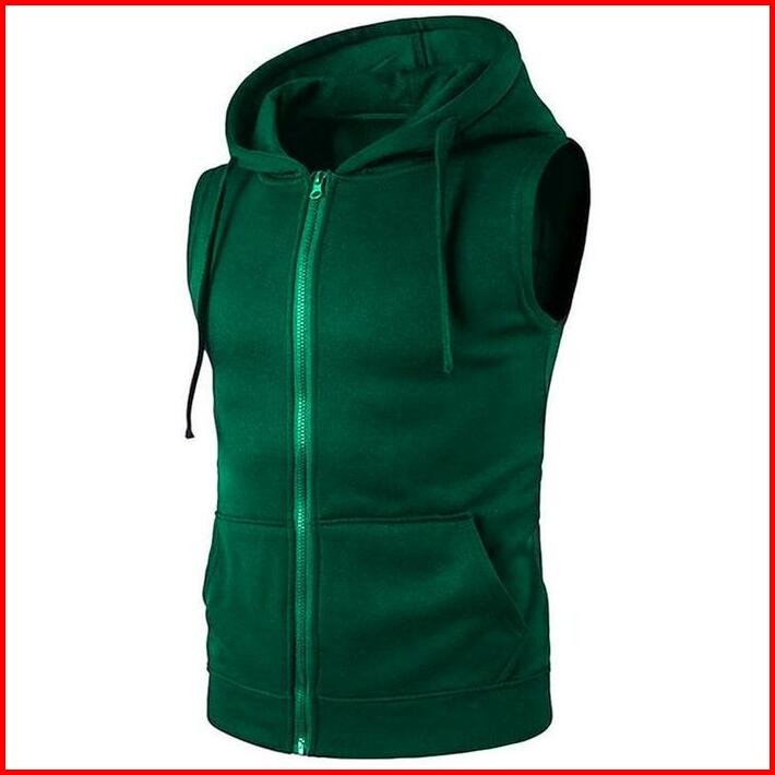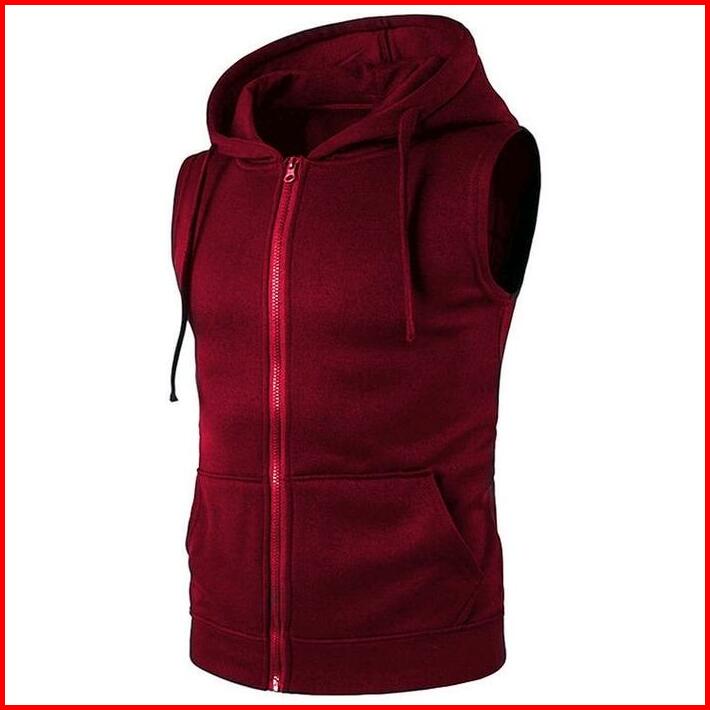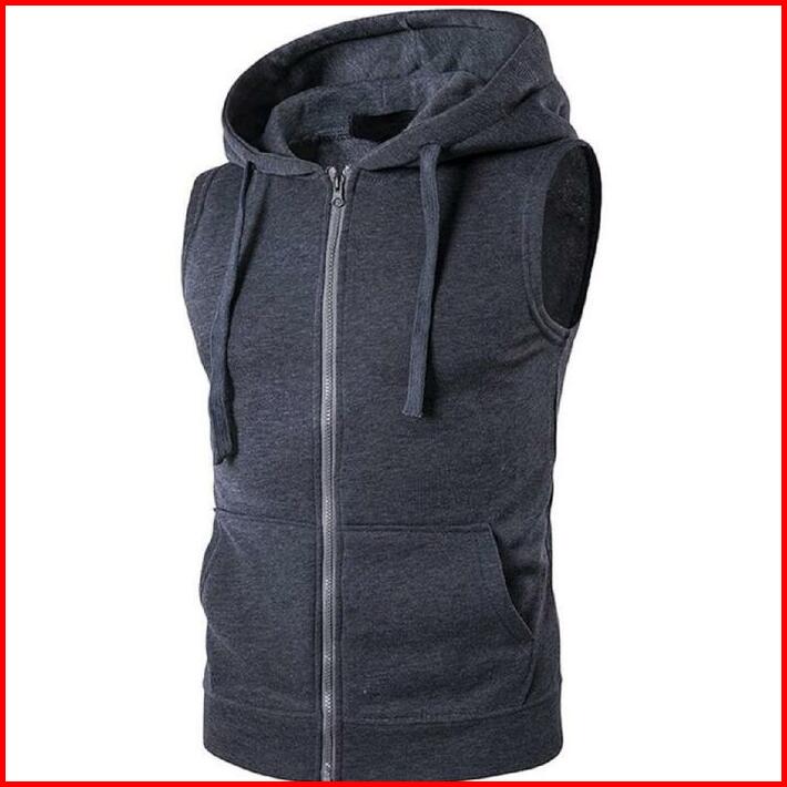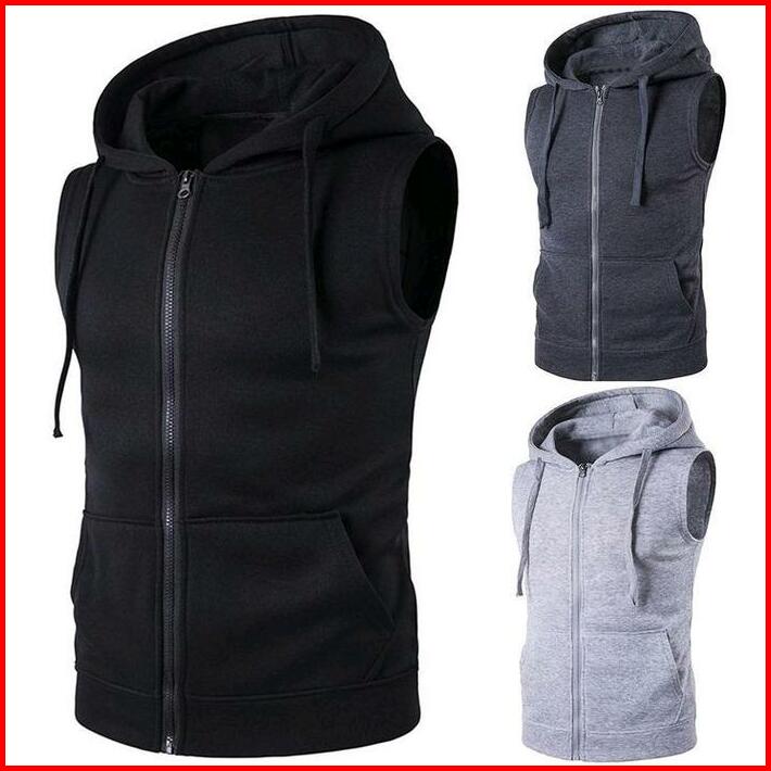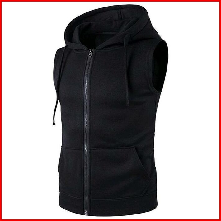 Rompi Pria Fleece Vest Hoodie Zipper Polos Hitam Rompi Gilet Sweater