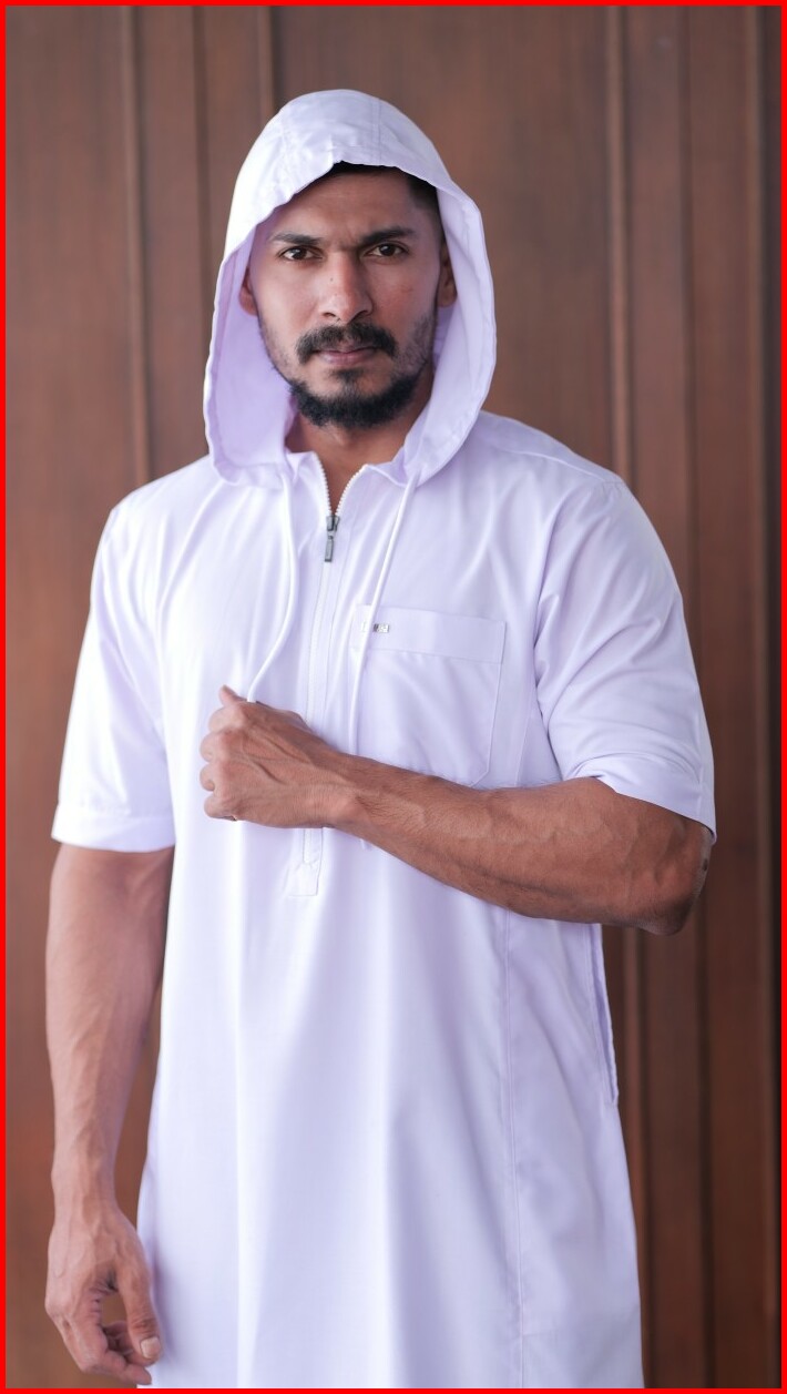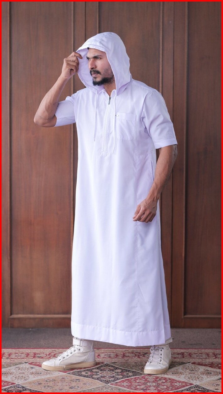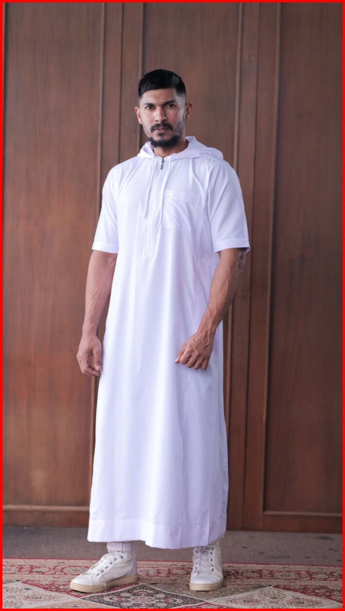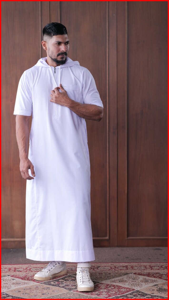 Jubah Gamis Shahama Short Sleeve Zipper Hoodie Sh-086 White